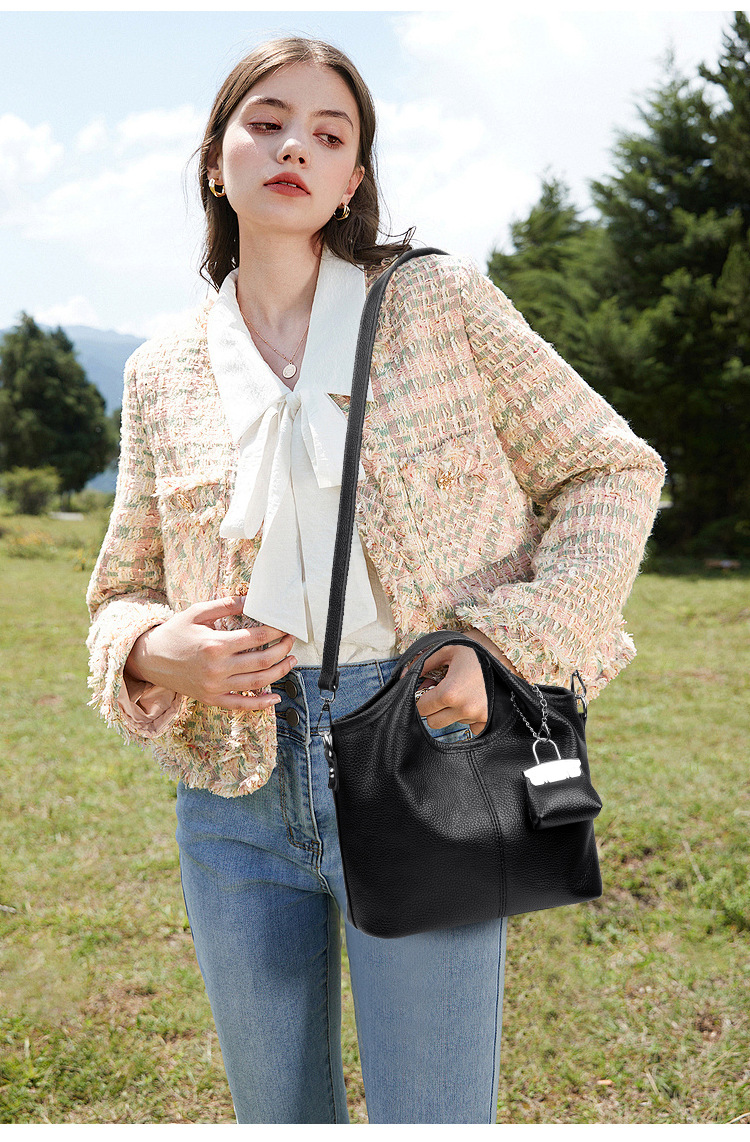2025 새로운 패션 다목적 소가죽 어깨 크로스 바디 백 하이 엔드 정품 가죽 휴대용 버킷 백 크로스 보더 여성용 가방스토어 가기