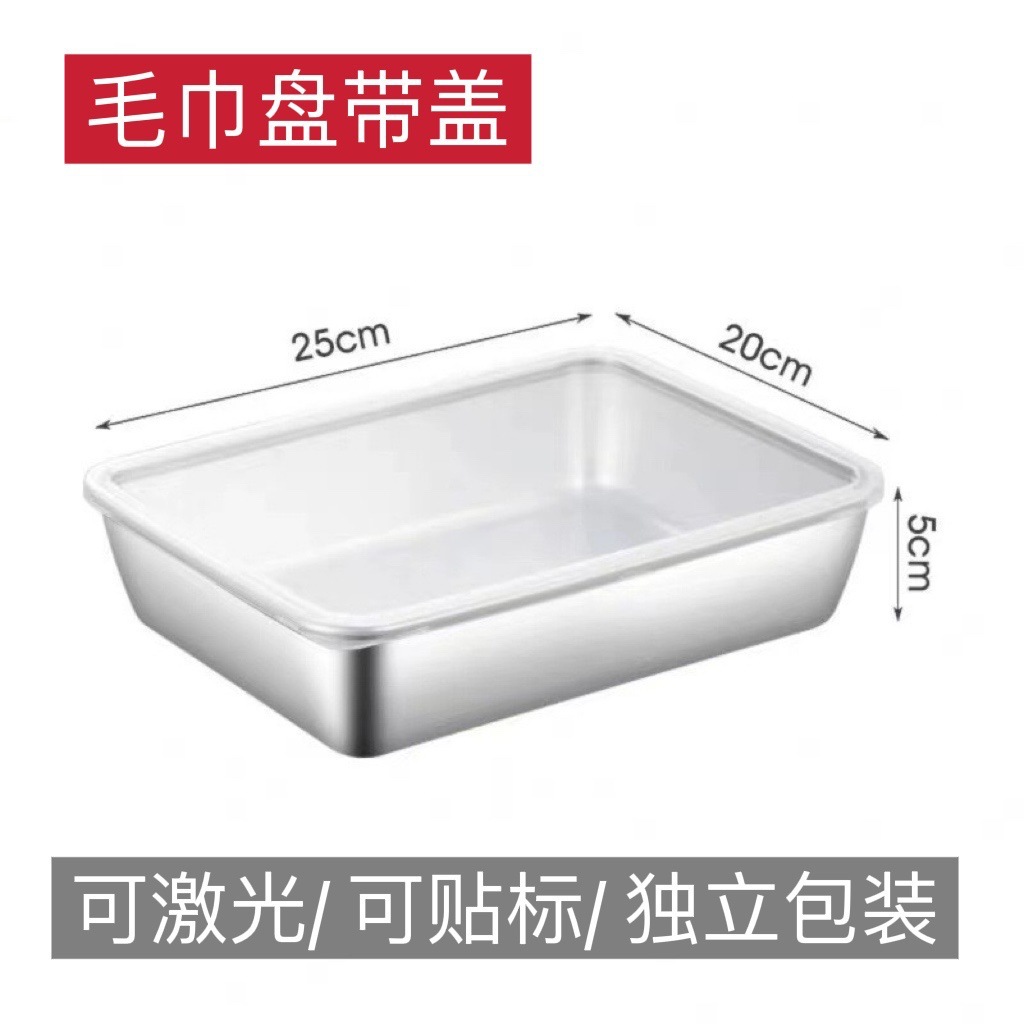 뚜껑이있는 스테인레스 스틸 타월 플레이트 트레이 일본식 스퀘어 플레이트 식품 준비 플레이트 냉장고 보존 상자 주방 보관 상자