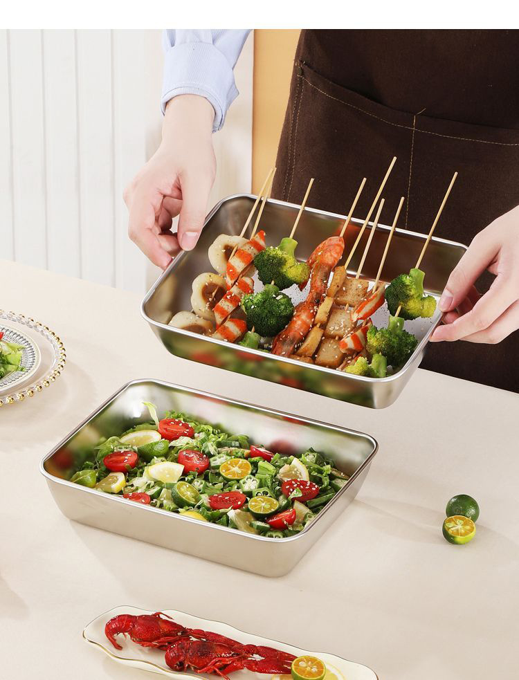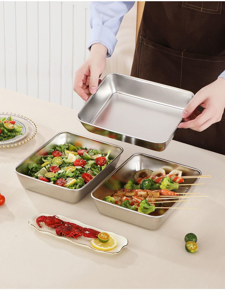 뚜껑이있는 스테인레스 스틸 타월 플레이트 트레이 일본식 스퀘어 플레이트 식품 준비 플레이트 냉장고 보존 상자 주방 보관 상자스토어 가기