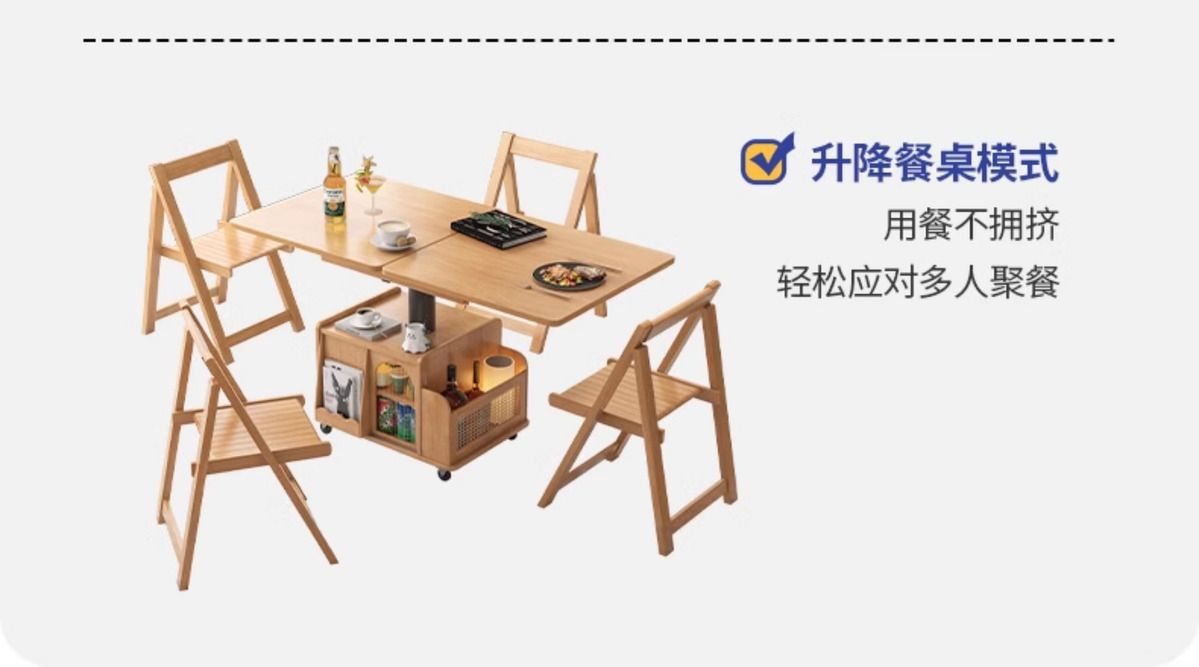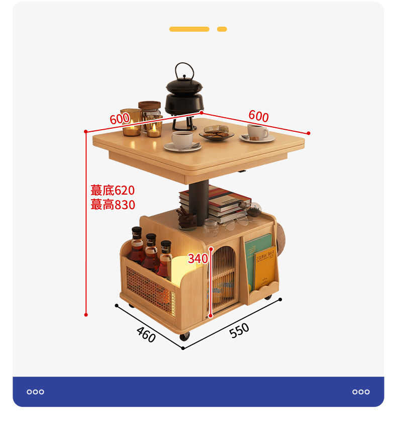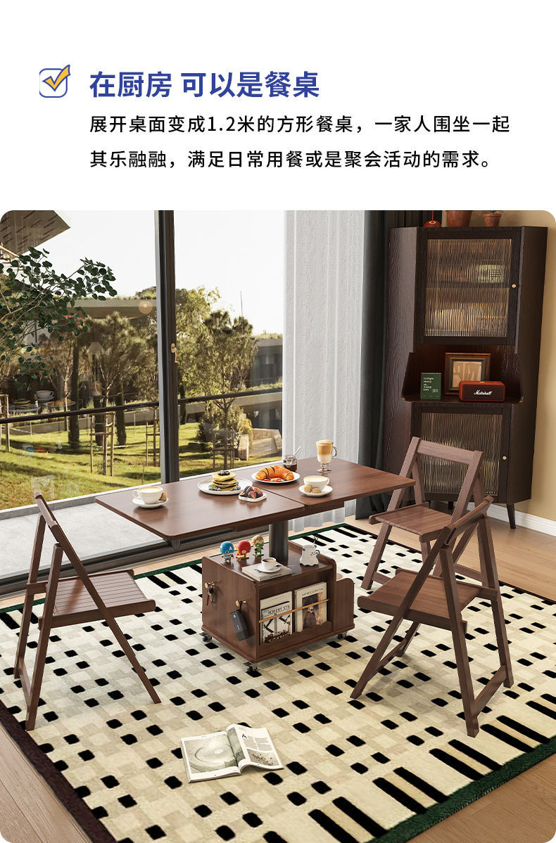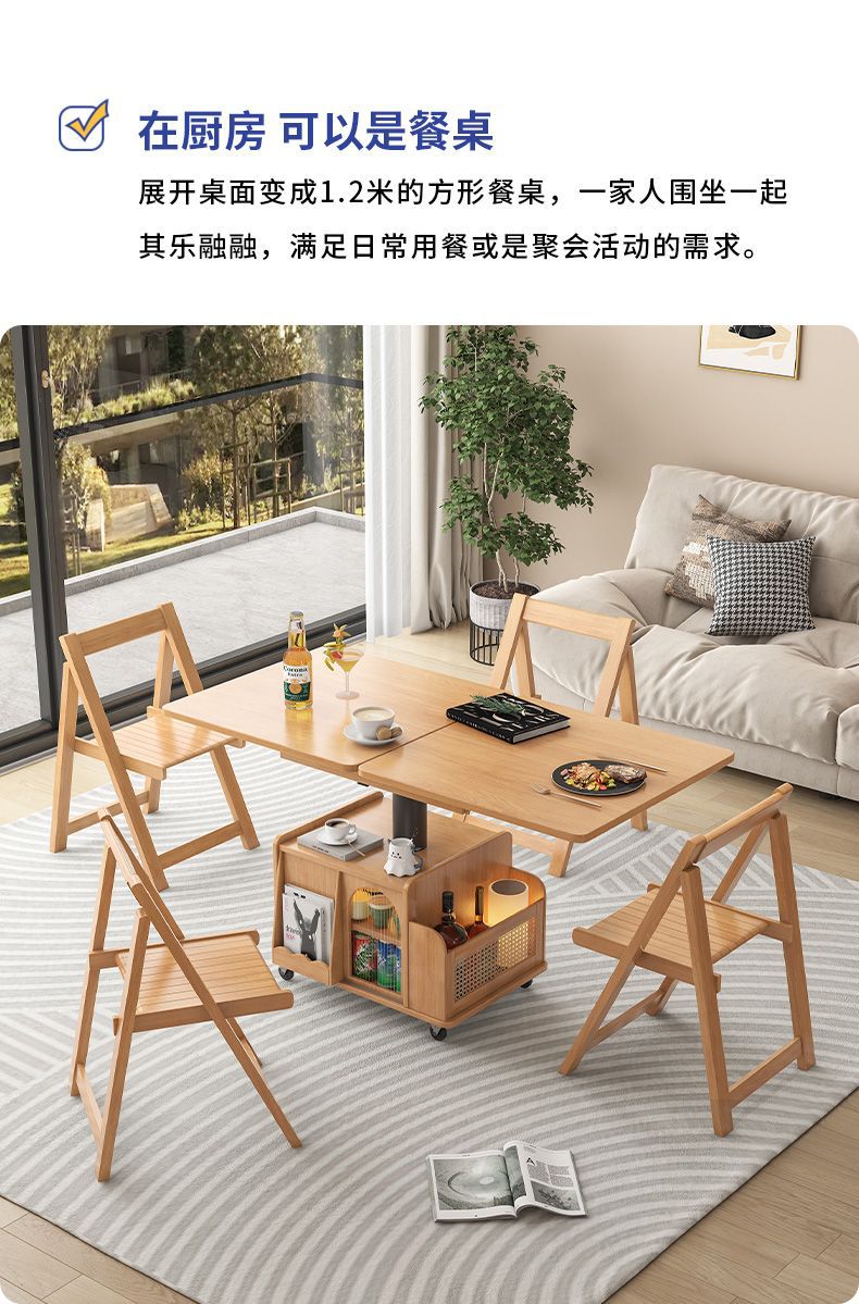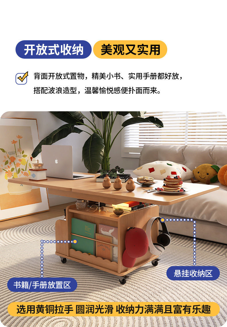 다기능 커피 테이블 모바일 카트 단단한 나무 티 테이블 리프팅 티 테이블 작은 아파트 거실 접이식 소파 식탁 이중 사용스토어 가기