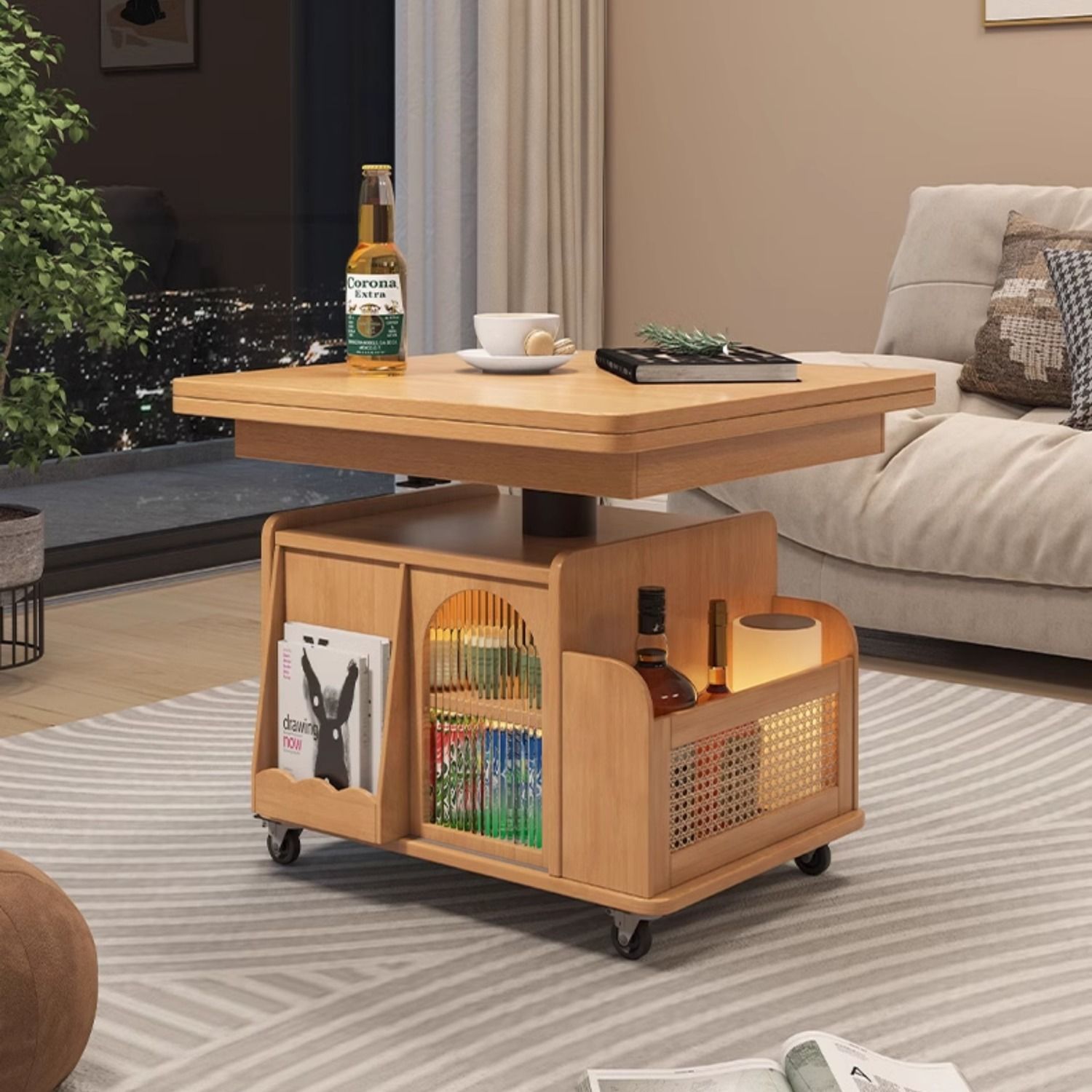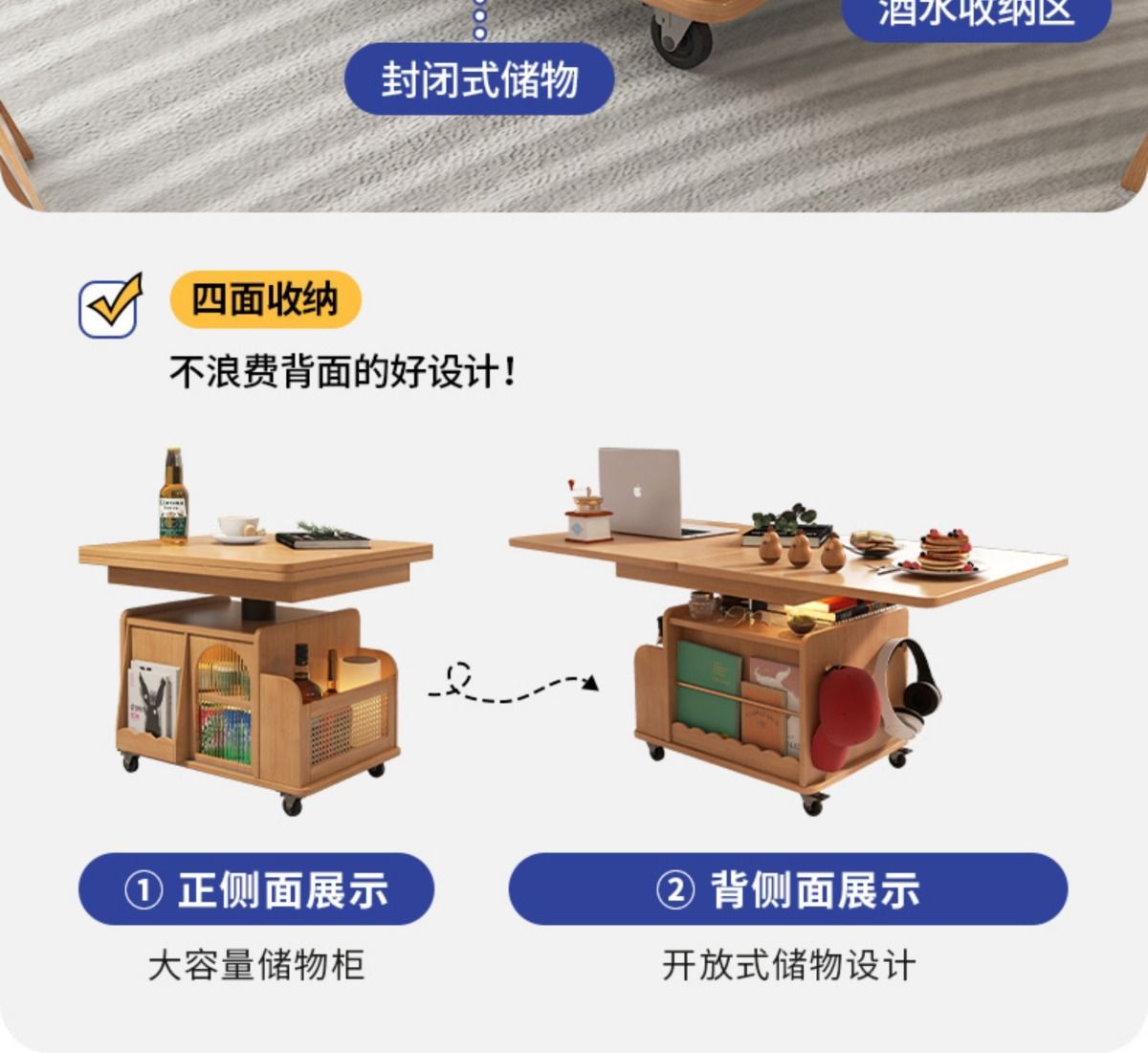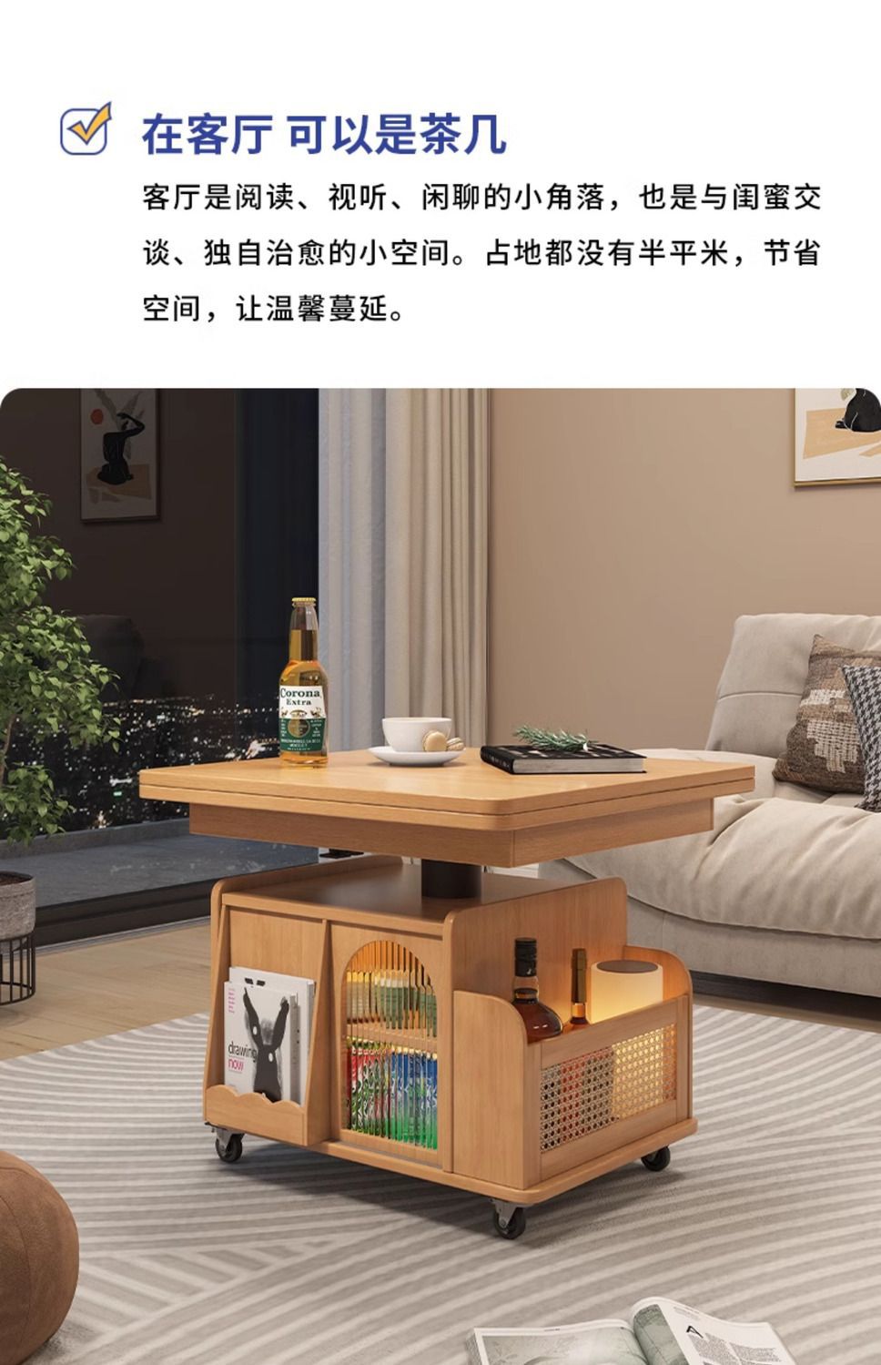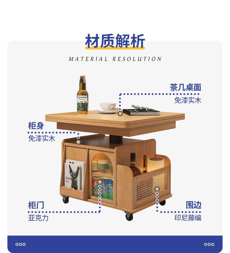 다기능 커피 테이블 모바일 카트 단단한 나무 티 테이블 리프팅 티 테이블 작은 아파트 거실 접이식 소파 식탁 이중 사용스토어 가기