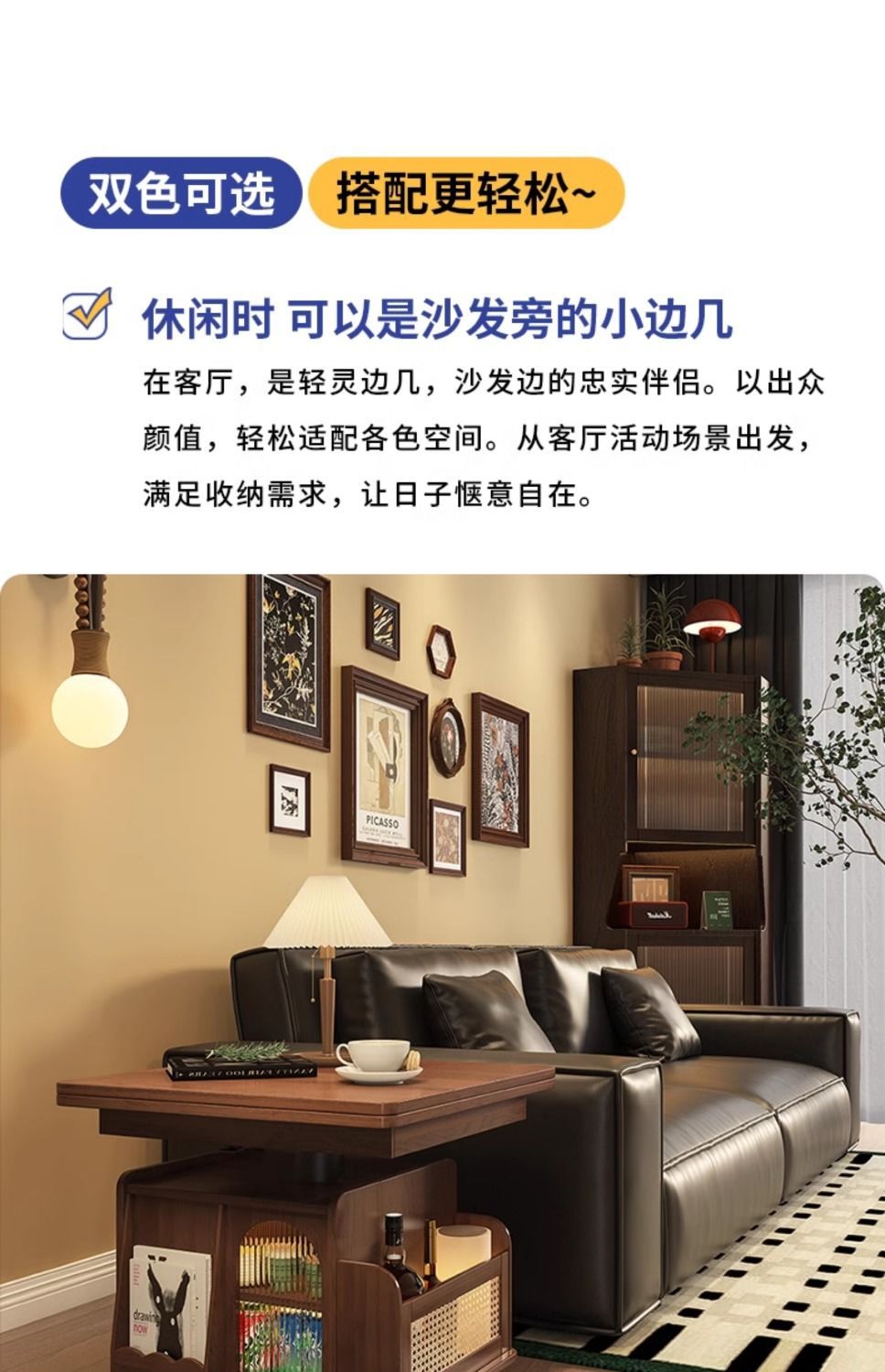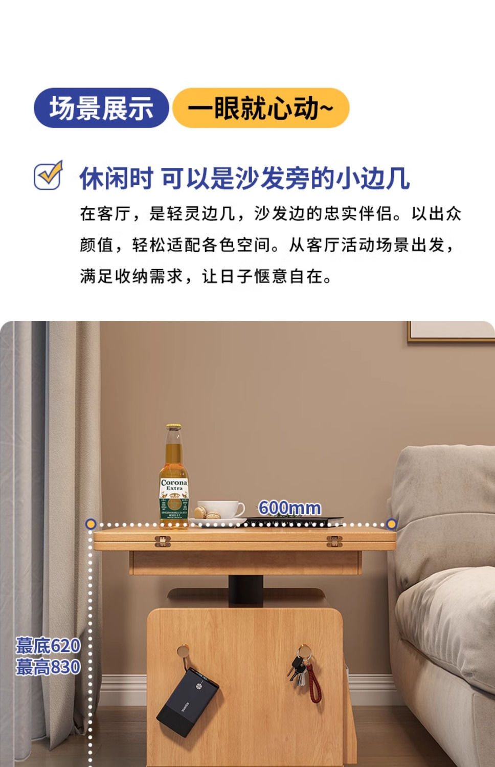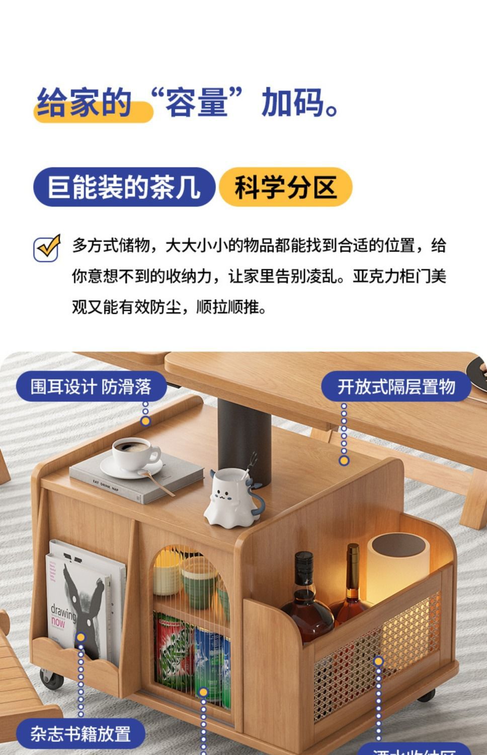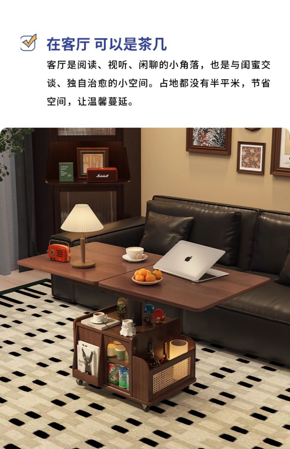 다기능 커피 테이블 모바일 카트 단단한 나무 티 테이블 리프팅 티 테이블 작은 아파트 거실 접이식 소파 식탁 이중 사용스토어 가기