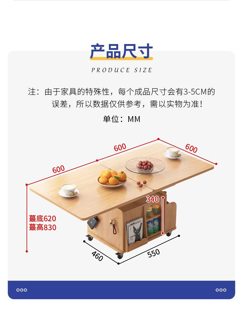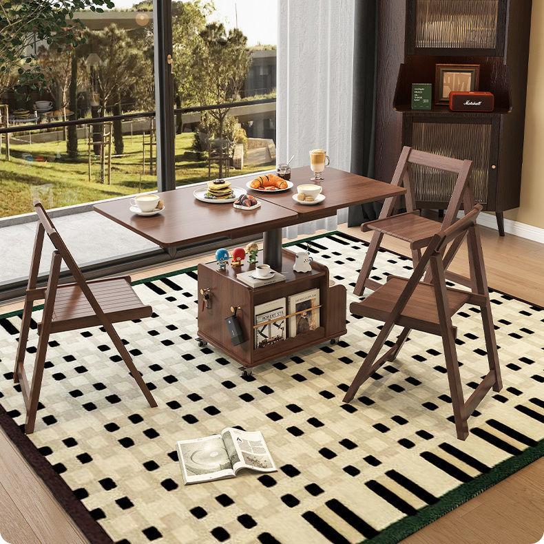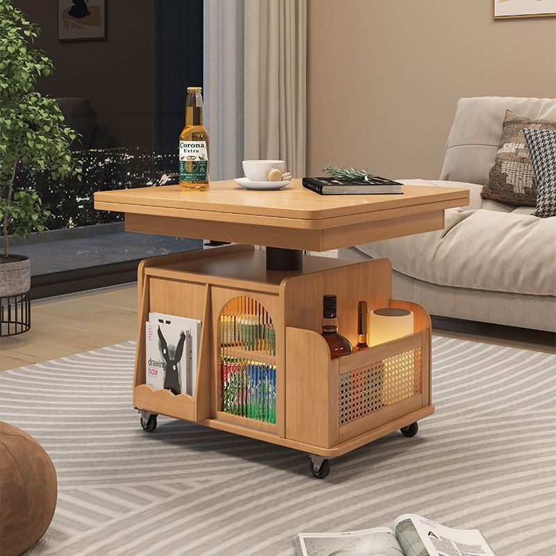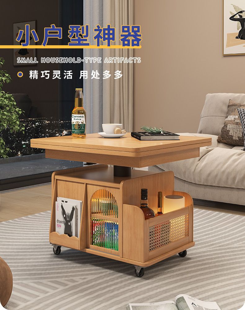 다기능 커피 테이블 모바일 카트 단단한 나무 티 테이블 리프팅 티 테이블 작은 아파트 거실 접이식 소파 식탁 이중 사용