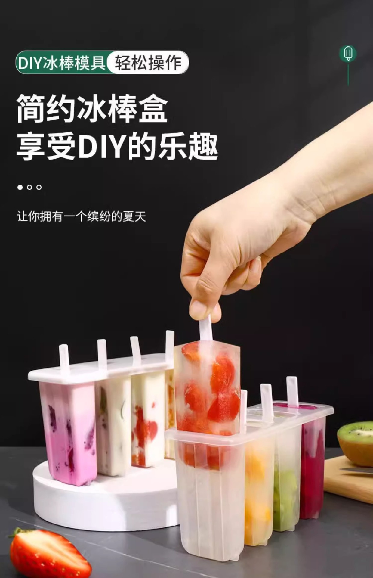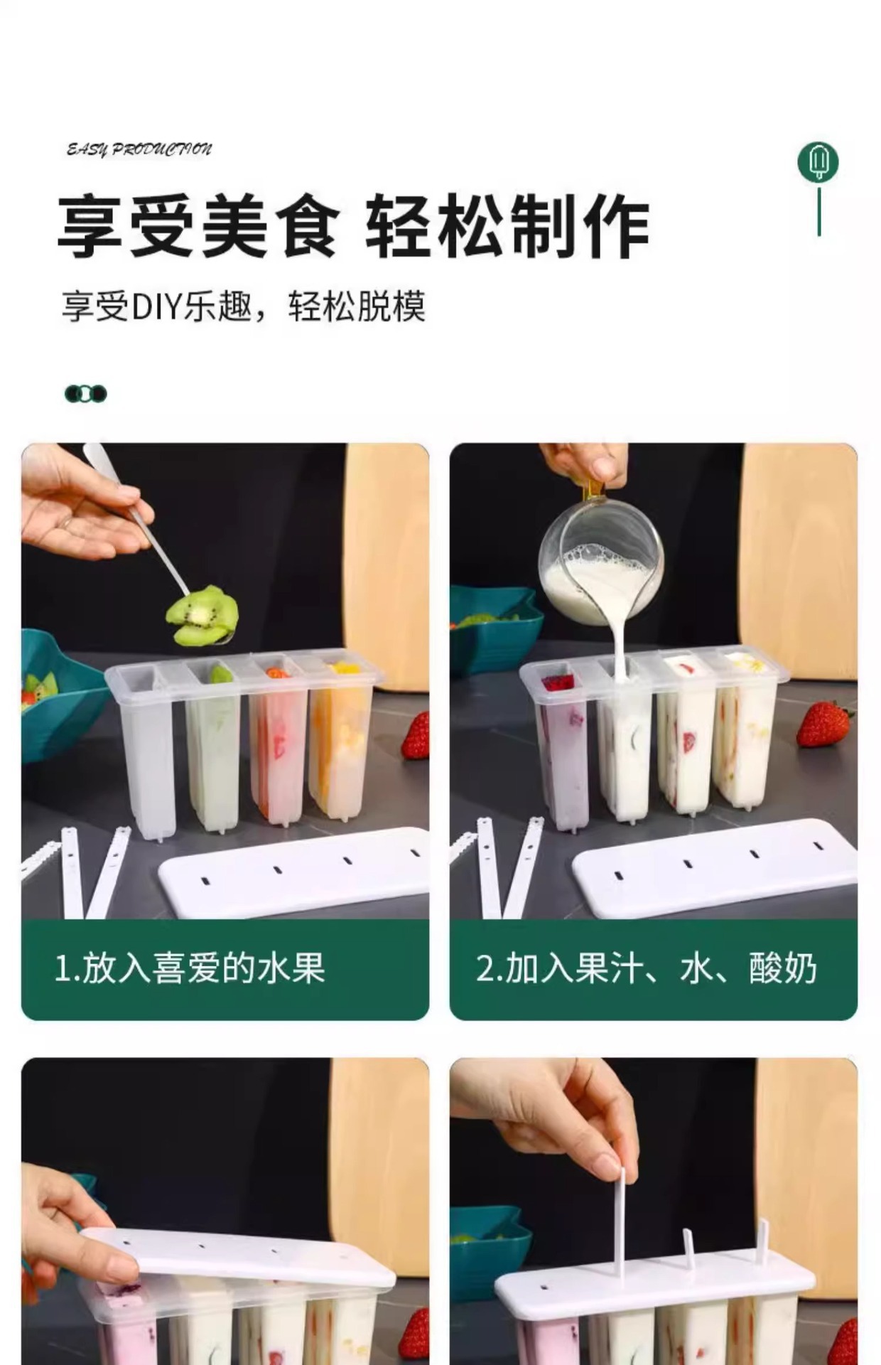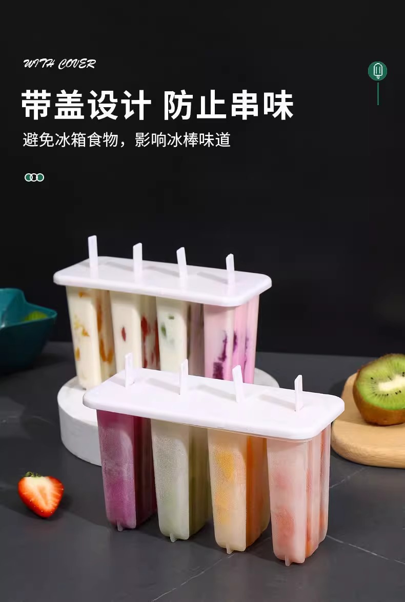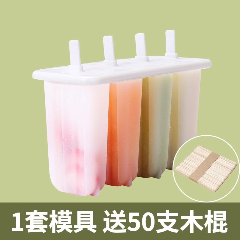 • 뚜껑이 있는 수제 아이스크림 틀 4개 - 1개 + 아이스크림 스틱 50개