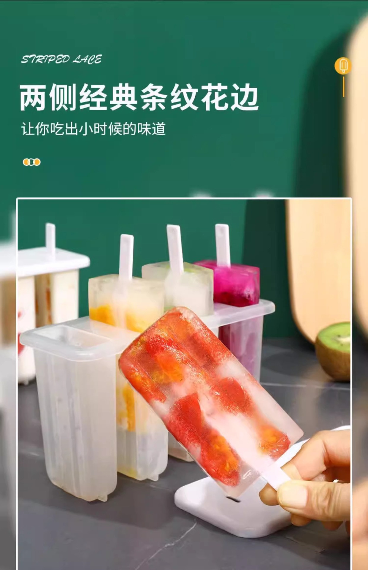 • 뚜껑이 있는 수제 아이스크림 틀 4개 - 4세트 + 나무 막대기 100개