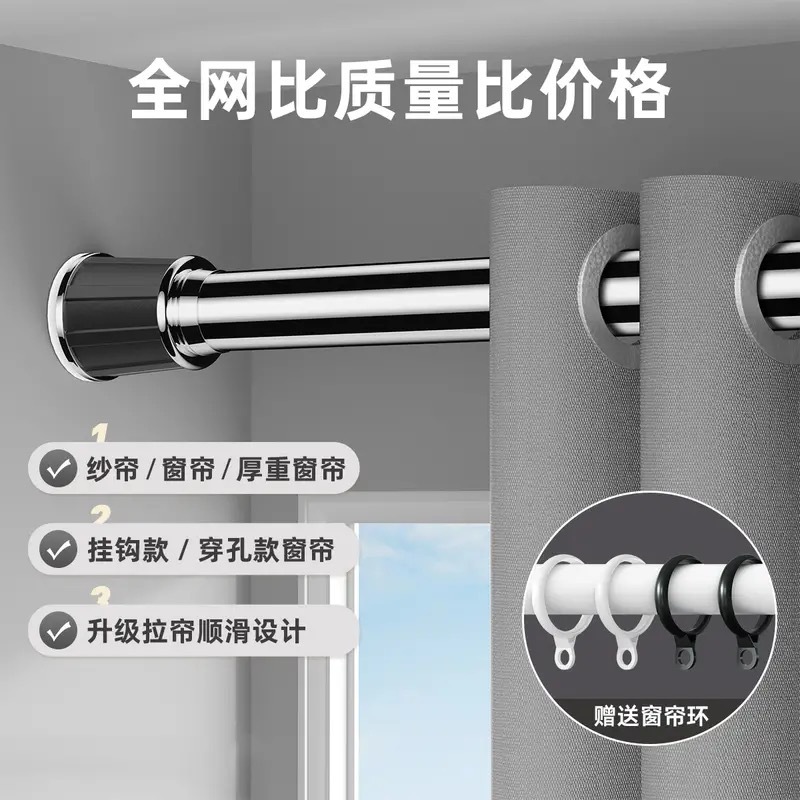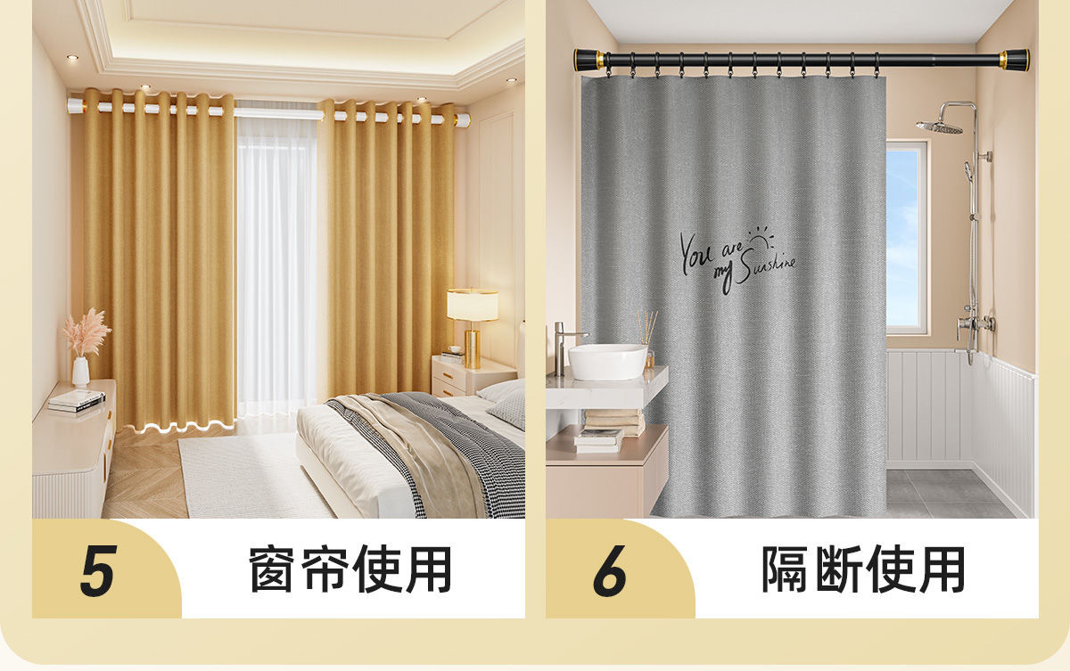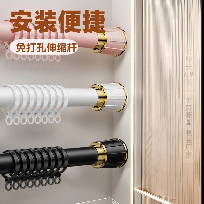 구멍이없는 텔레스코픽 로드 커튼 막대 싱글 막대 스트럿 도어 커튼 막대 걸이 샤워 커튼 막대 구멍이없는 설치 의류 기둥