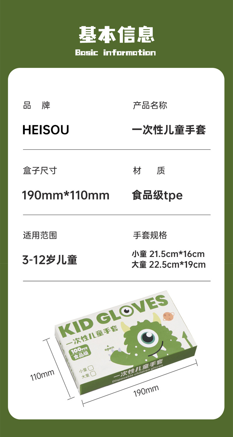 어린이용 일회용 장갑 식품 등급 TPE 투명 탈착식 대형 소형 유아용 방유 인증 수출 전용