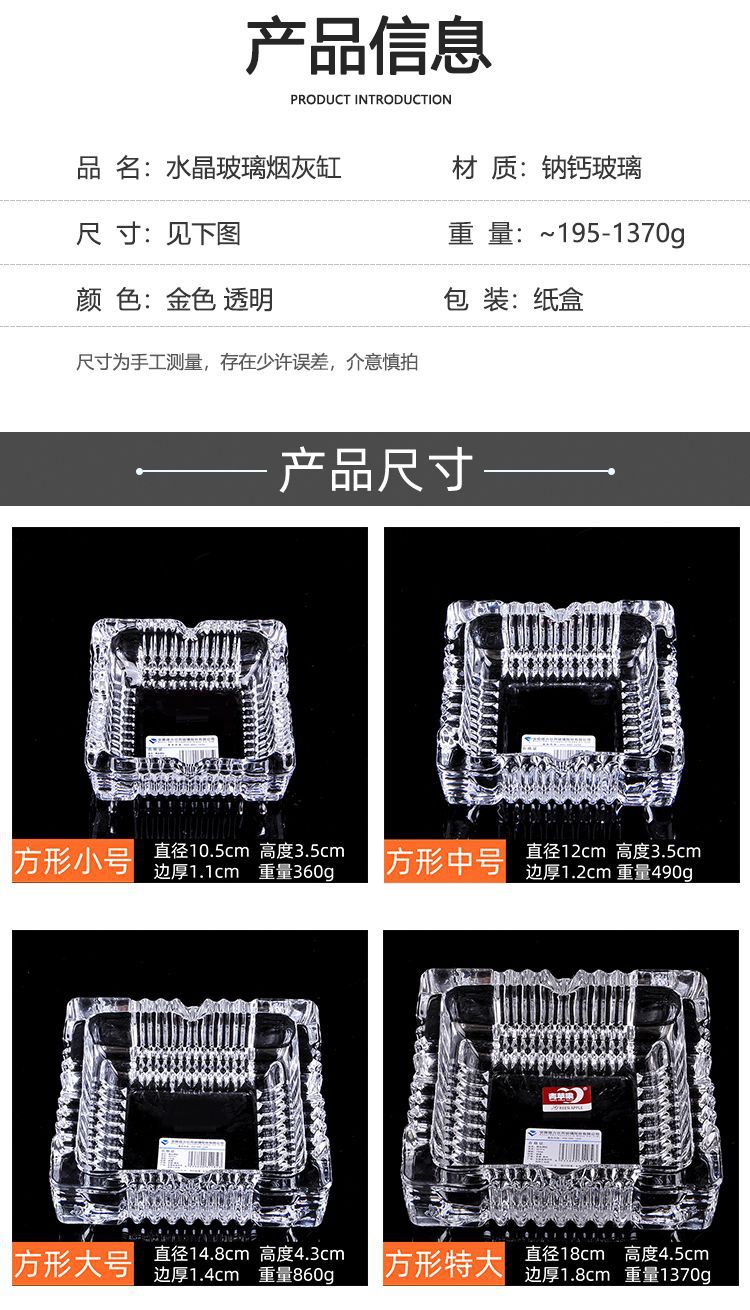 [하나 사면 두 개 무료] 재떨이 창의적인 맞춤형 홈 침대 옆 거실 바 대형 크리스탈 유리 재떨이