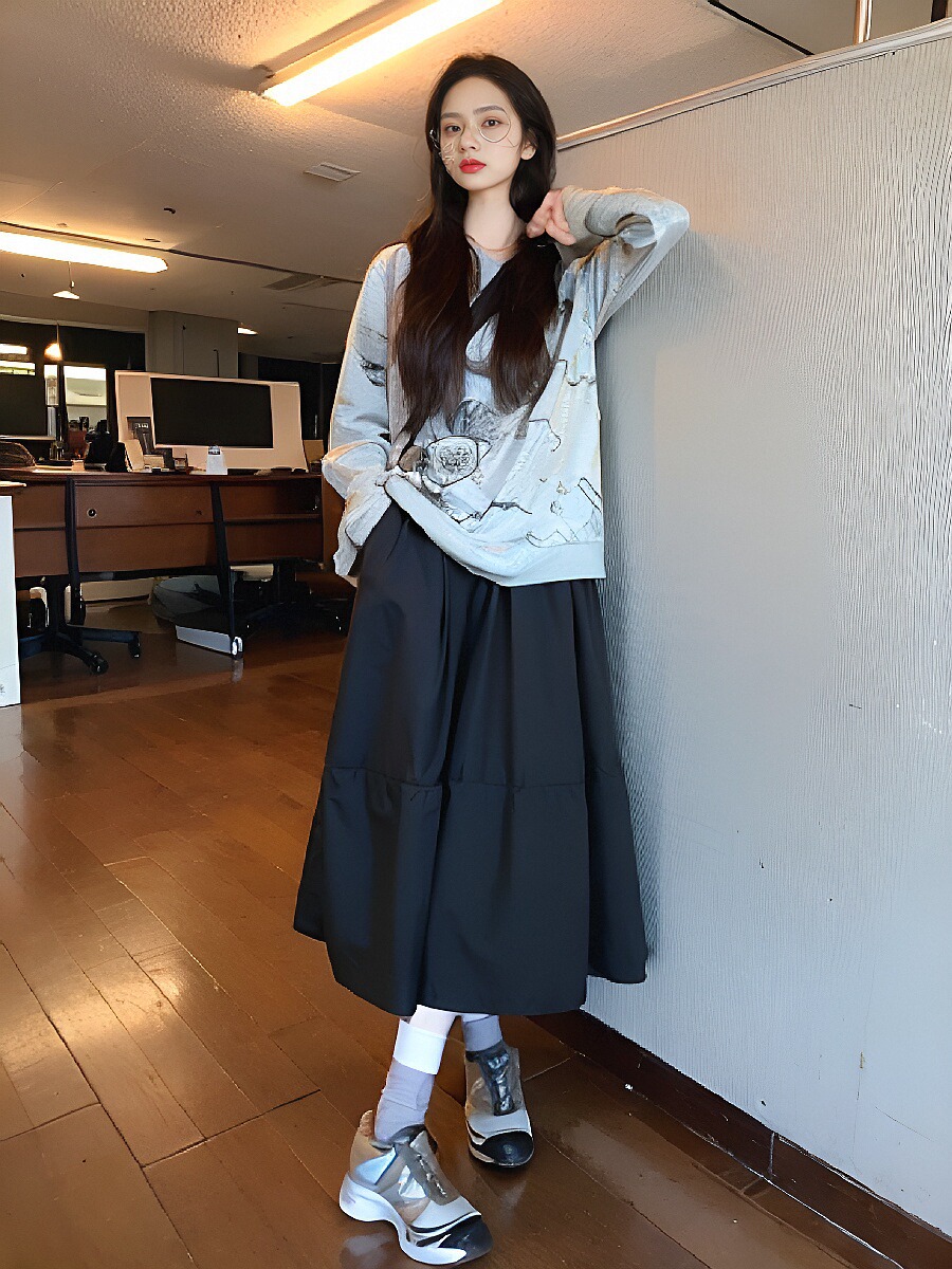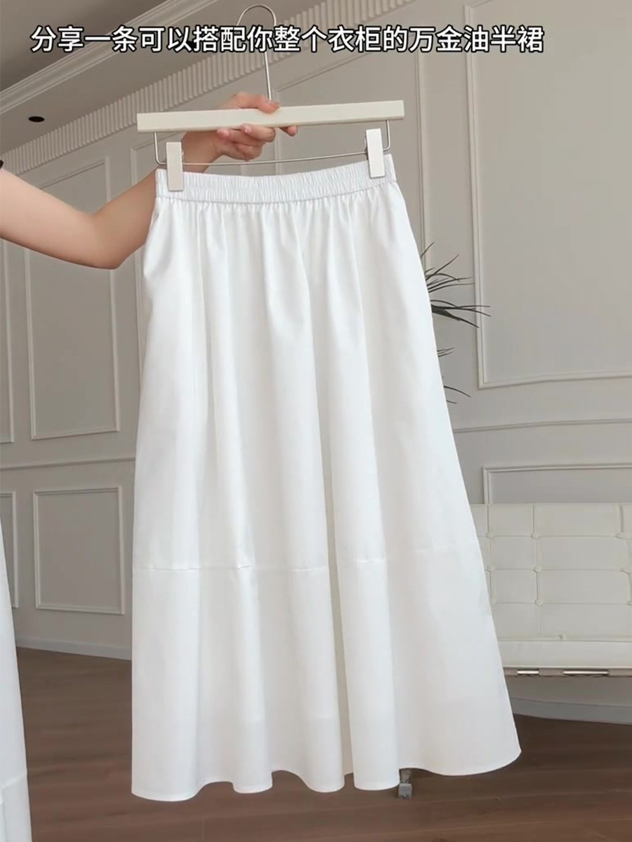 흰색 A 라인 스커트 봄과 여름 높은 허리 고기 커버 우산 스커트 작은 배 모양의 몸 슬리밍 면 여성을위한 중간 길이 스커트스토어 가기