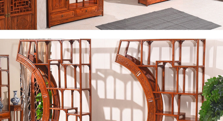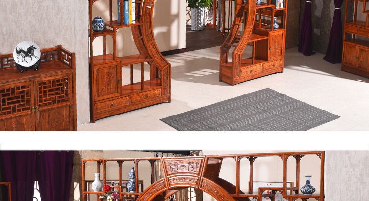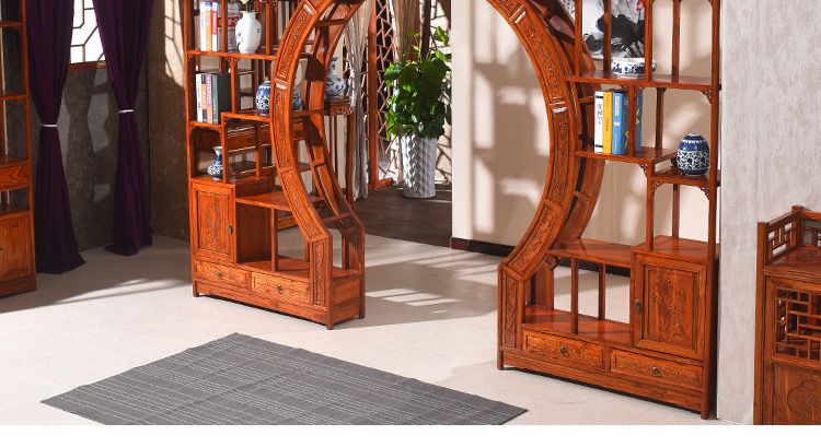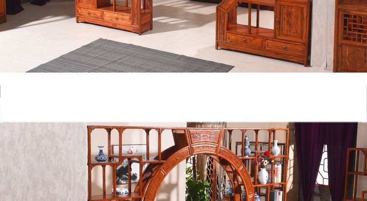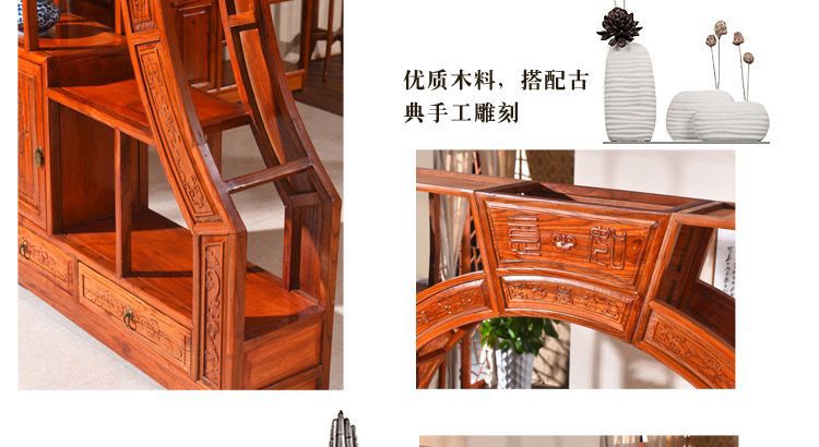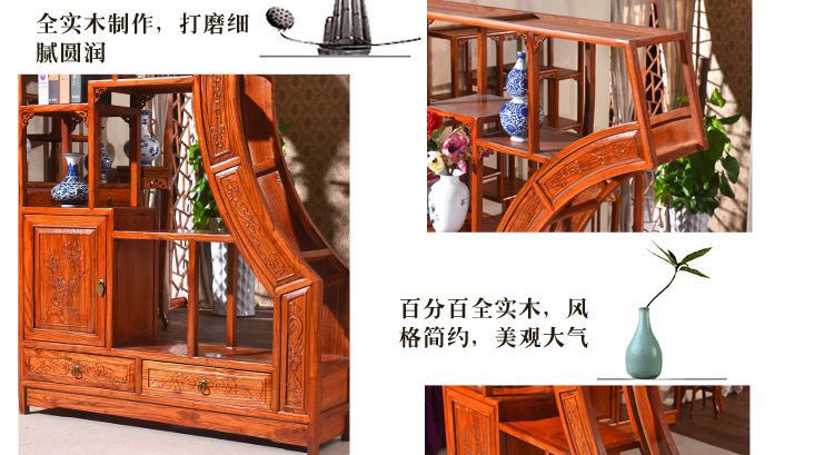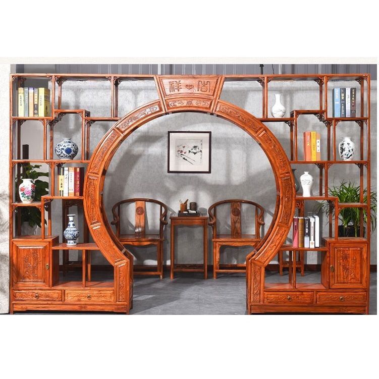 새로운 중국식 골동품 문 동굴 문 단단한 나무 골동품 랙 디스플레이 캐비닛 양면 조각 거실 파티션 Duobao Pavilion 스토리지 랙