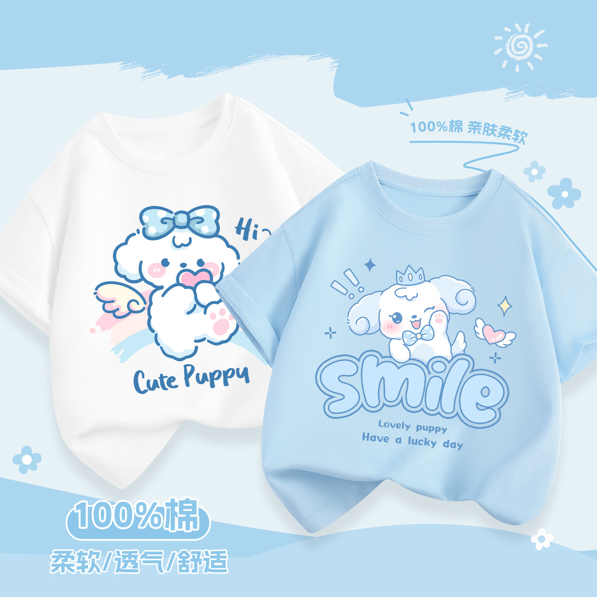 • [면100% 반팔티셔츠 2팩] 화이트 레인보우 퍼피_5+블루 스마일리 화이트 도그_5