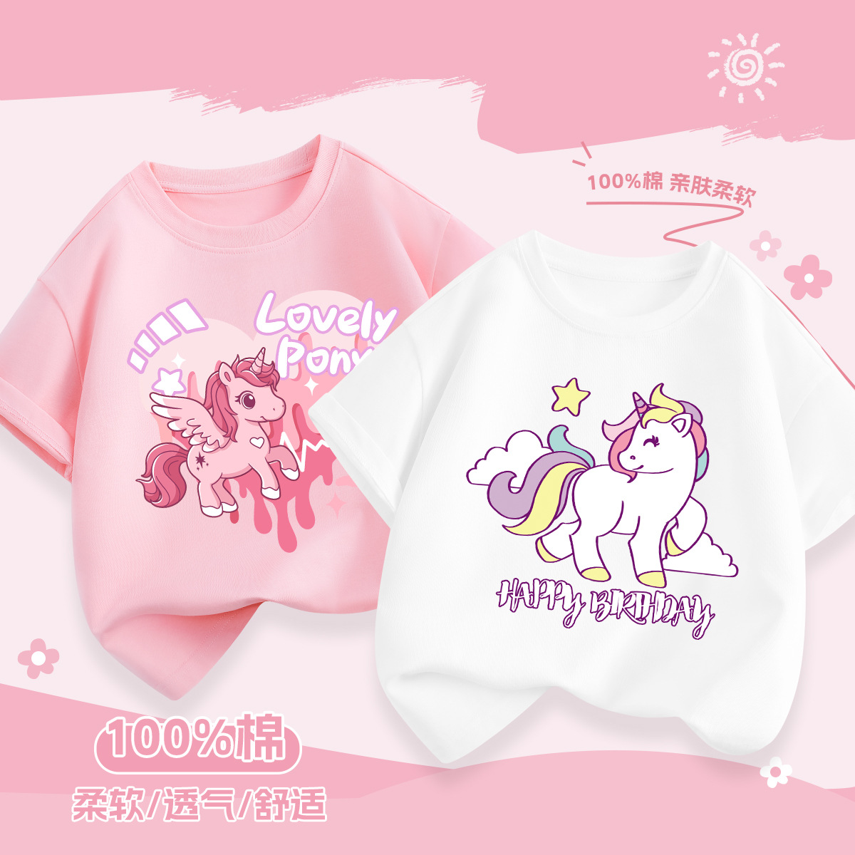 • [면100% 반팔 티셔츠 2팩] 핑크유니콘플라워_5+퍼플퍼플유니콘_5