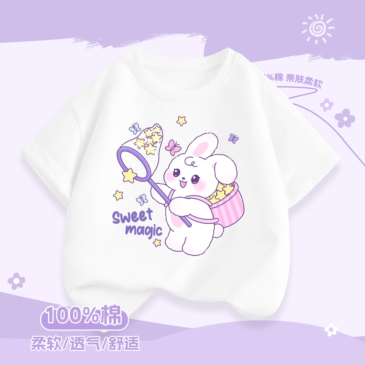 • [면100% 반팔 티셔츠 2팩] 퍼플 스위트 퍼플 래빗_5+화이트 스타캐치_5