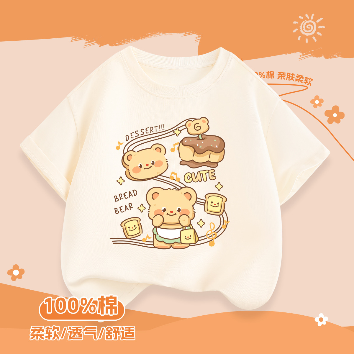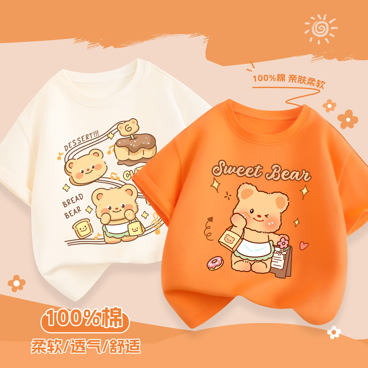 • [면100% 반팔 티셔츠 2팩] 오프화이트 토스트베어_5+ 브라이트오렌지 커스터드베어_5