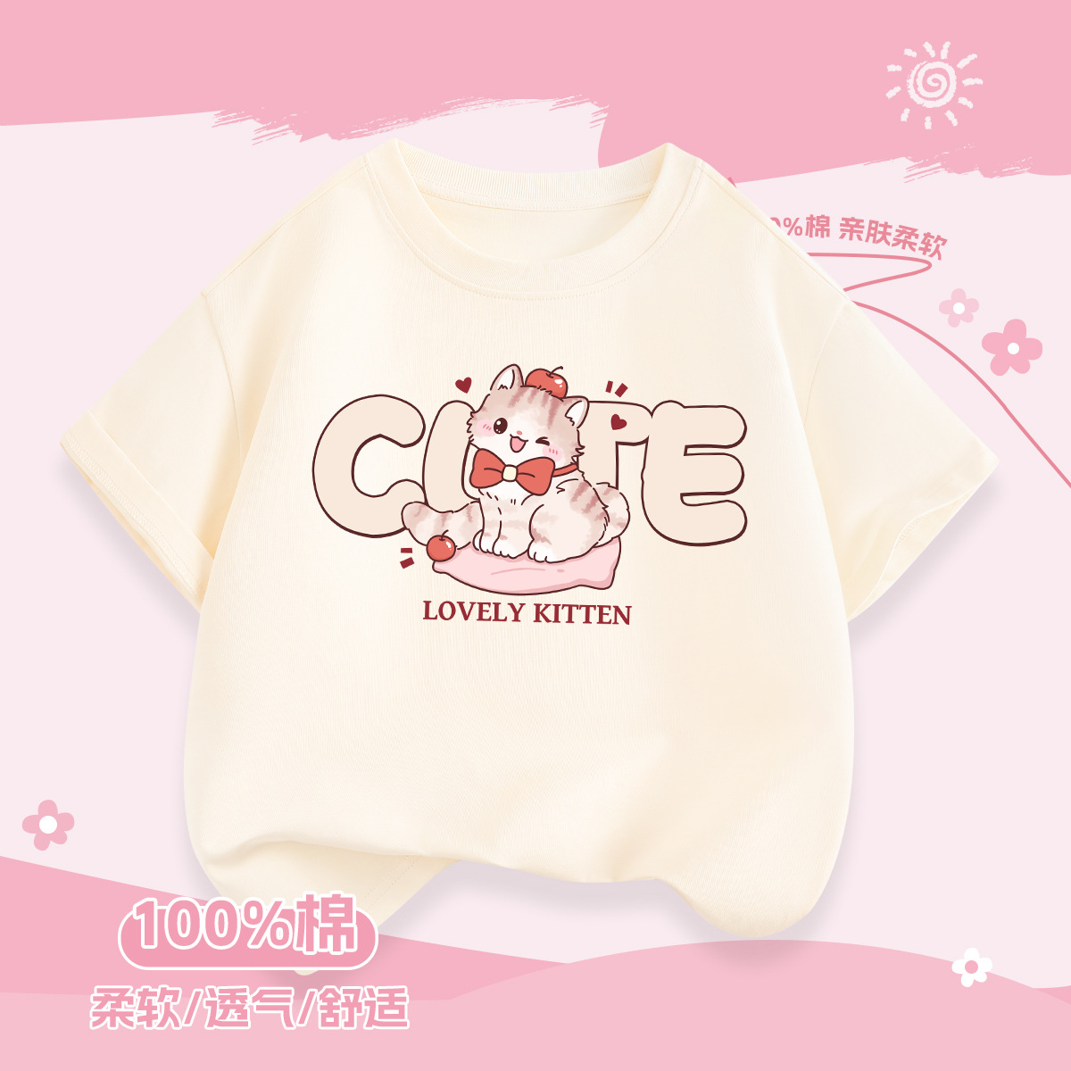 • [면100% 반팔티셔츠 2팩] 핑크나비 핑크고양이_5+오프화이트 귀여운고양이_5