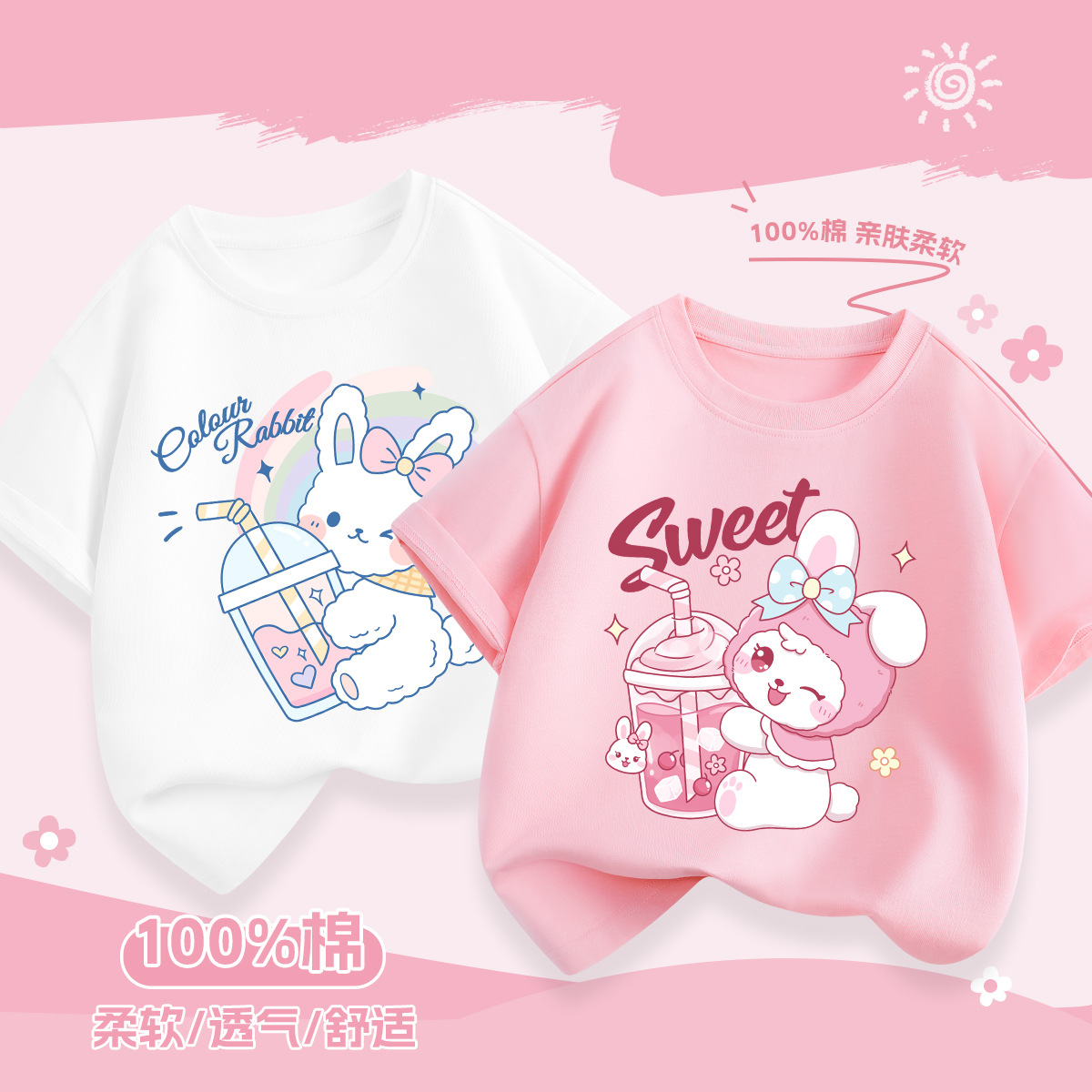 • [면100% 반팔 티셔츠 2팩] 화이트스타 밀크티_5+ 핑크 밀크티 핑크래빗_5