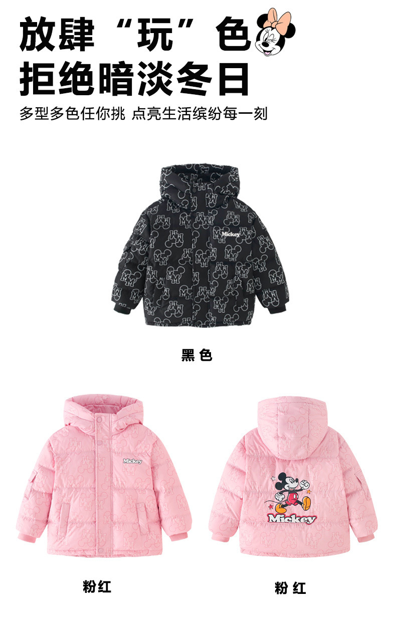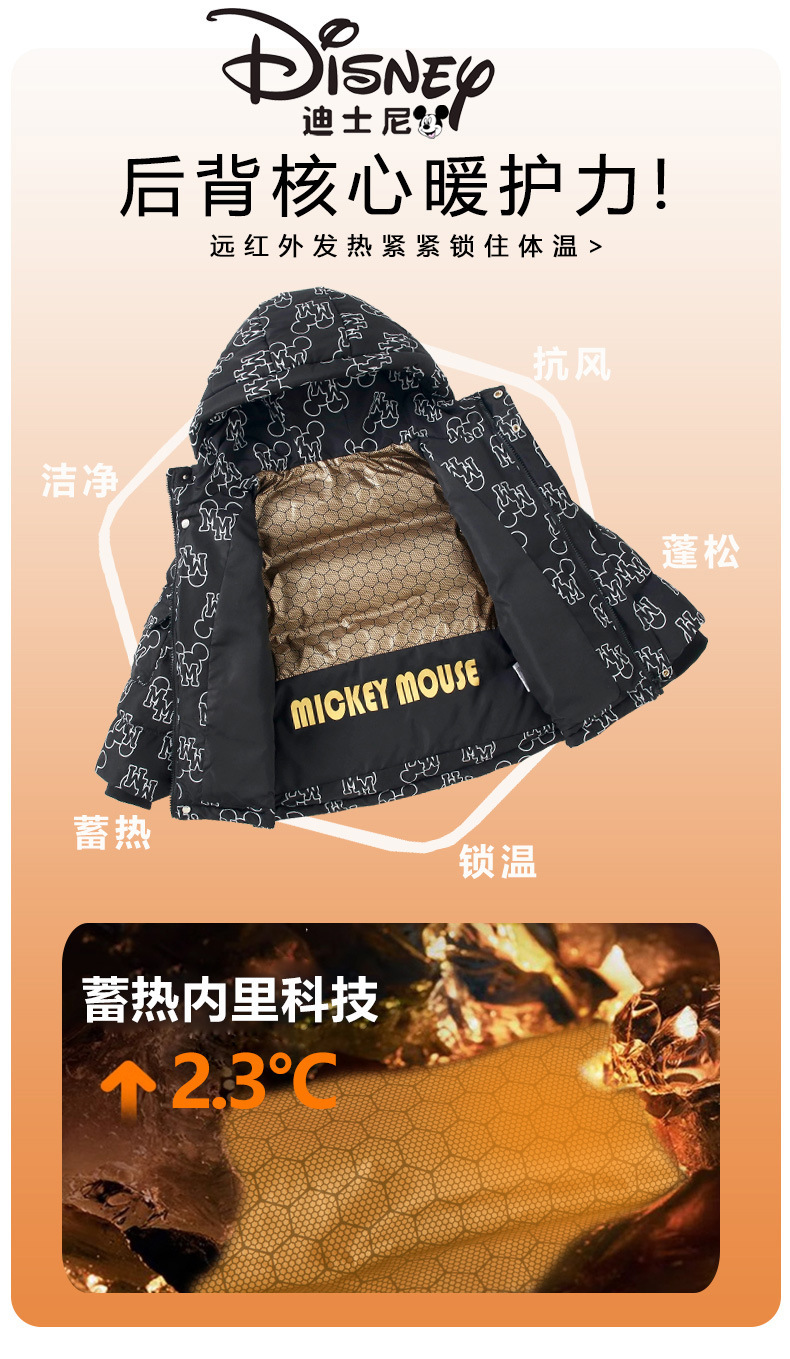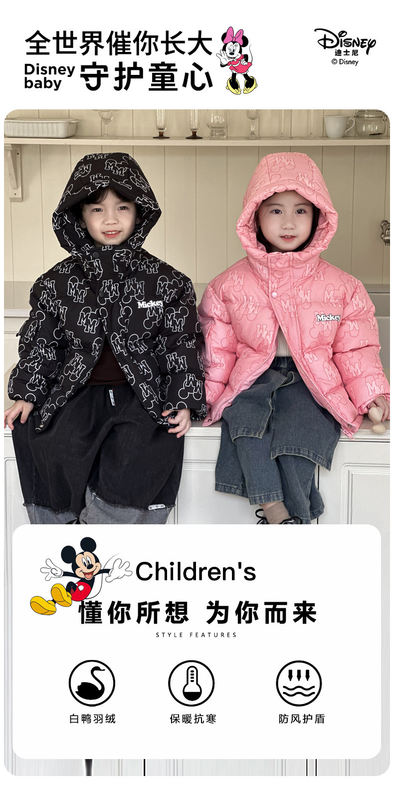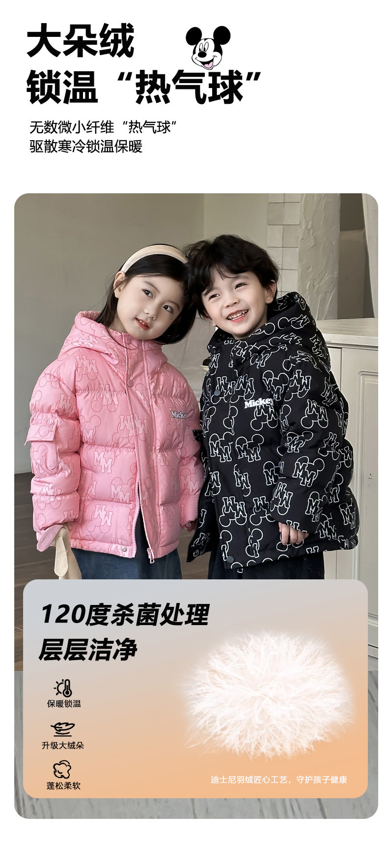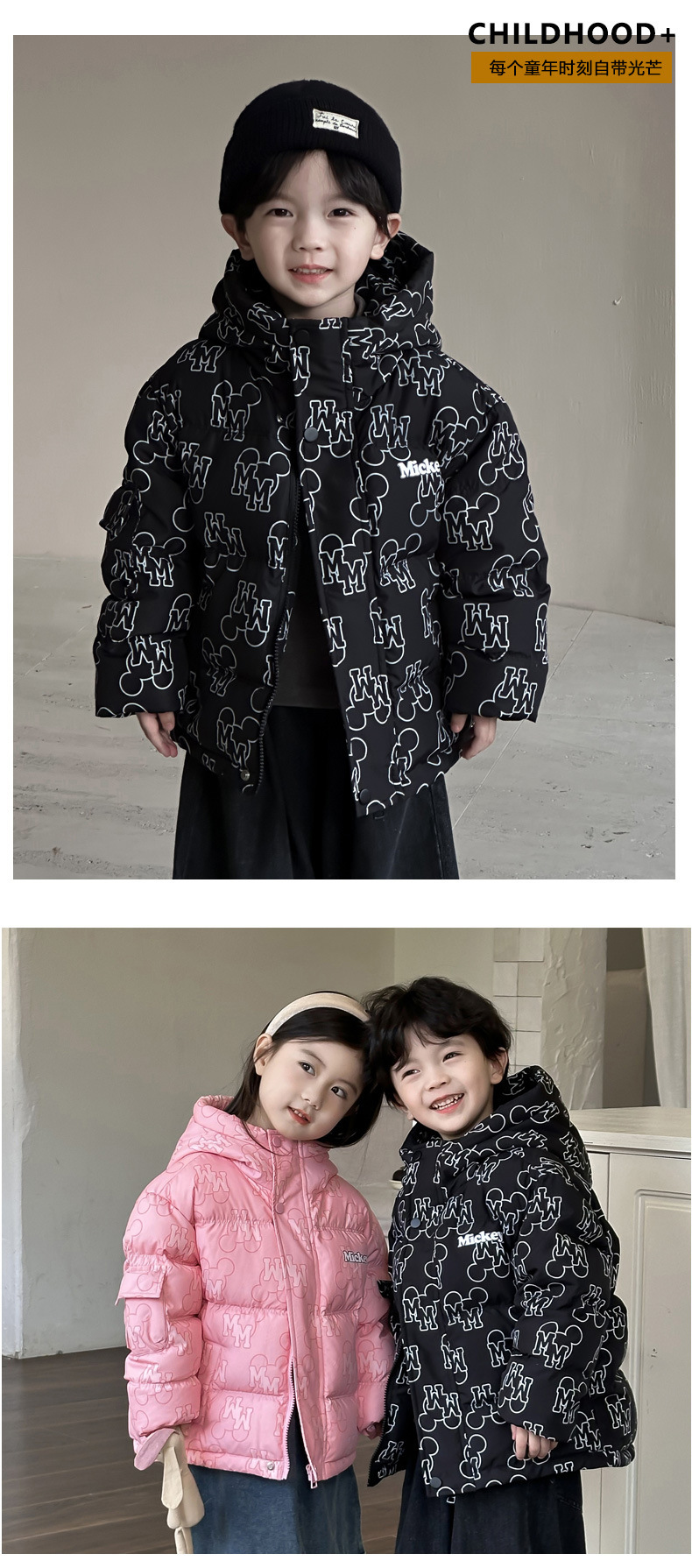 디즈니 키즈 90 화이트 덕 다운 새로운 국가 표준 풀 프린트 다운 재킷 블랙 골드 두꺼운 후드 다운 재킷스토어 가기