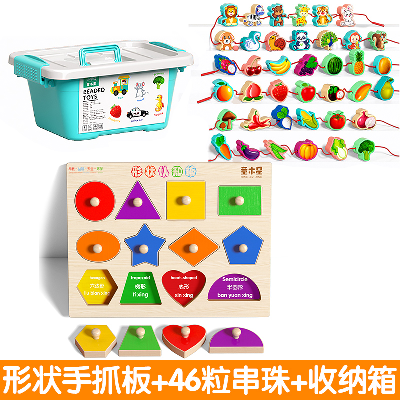 • 모양 모델 + 대형 입자 46개 [동물/과일/야채] + 보관 상자/손과 눈의 협응력 향상