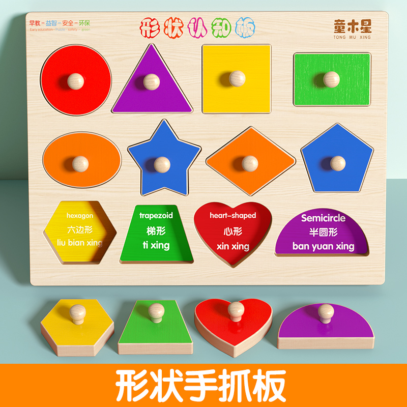 1세 및 3세 유아 및 어린이를 위한 몬테소리 조기 교육용 그림자 퍼즐이 포함된 스크래치 보드, 기하학적 인지 매칭 교육용 빌딩 블록 장난감스토어 가기