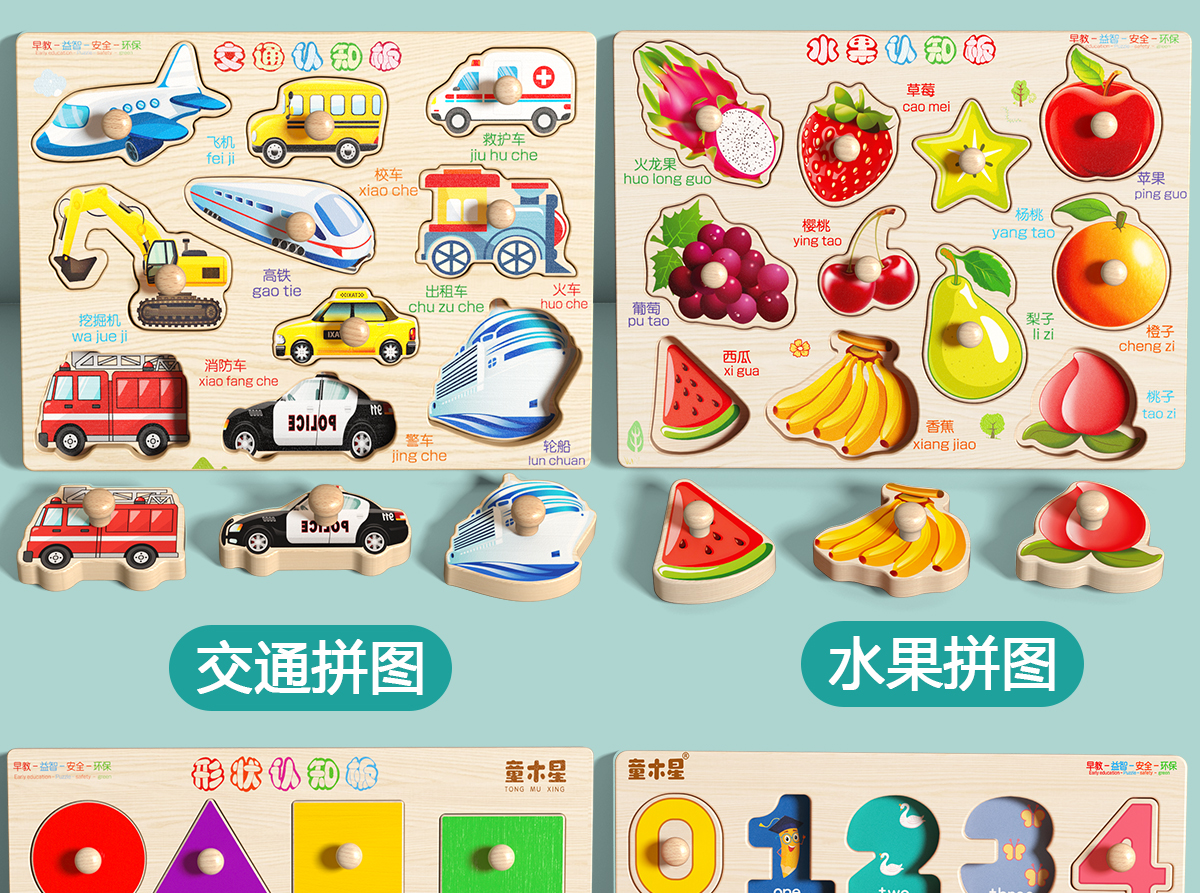 • 모양 모델 [인지 모양/연습 파악]에는 보관 가방 + 5-in-1 과일 매칭 보드가 함께 제공됩니다.