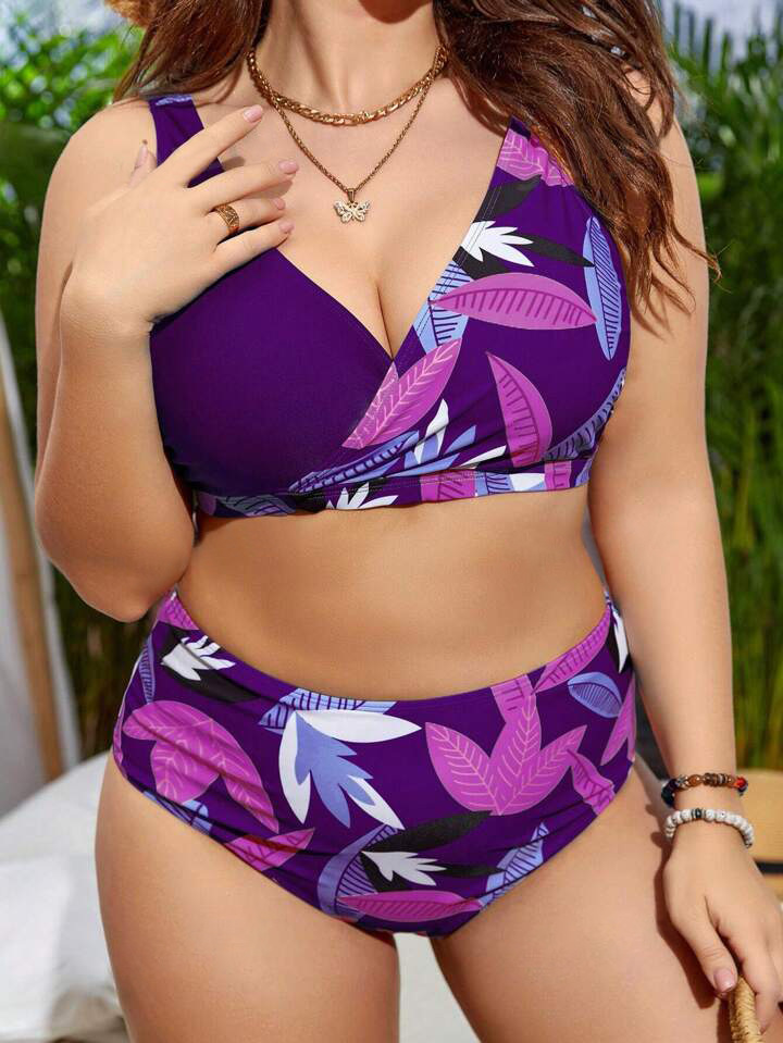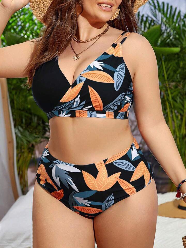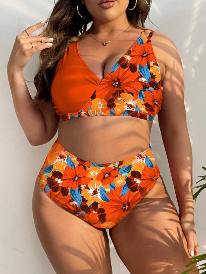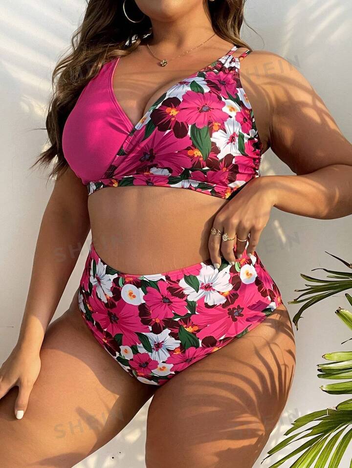 2025 유럽과 미국의 플러스 사이즈 여성 여름 정장 뜨거운 소녀 꽃 푸시 업 섹시한 비키니 세트 플러스 사이즈 수영복 수영복스토어 가기