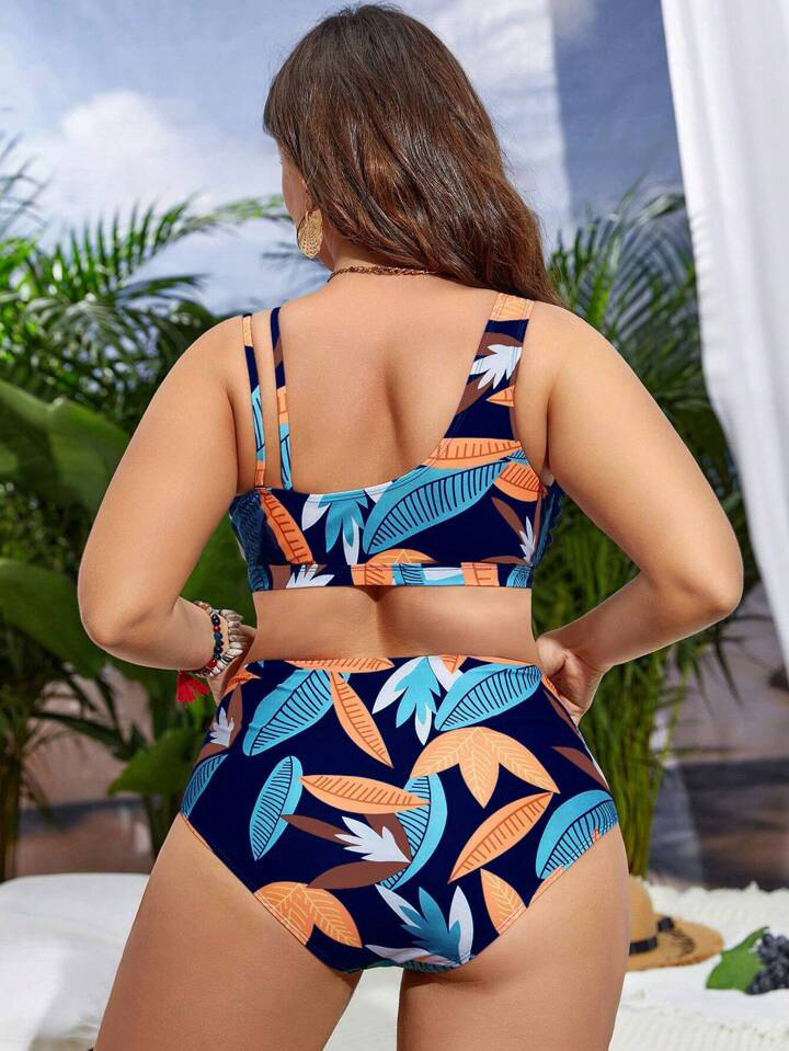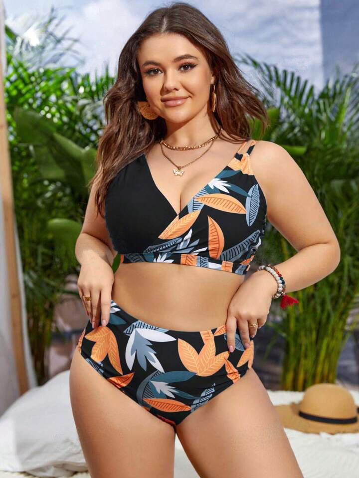2025 유럽과 미국의 플러스 사이즈 여성 여름 정장 뜨거운 소녀 꽃 푸시 업 섹시한 비키니 세트 플러스 사이즈 수영복 수영복
