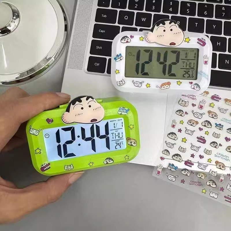새로운 크레용 작은 새로운 알람 시계 빛나는 침대 시계 간단한 다기능 타이밍 기숙사 학습 데스크톱 시계스토어 가기