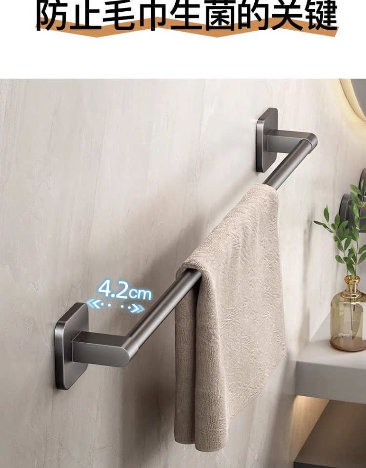 공장에서 공급하는 우주 알루미늄 펀치 없는 벽걸이형 수납선반, 욕실 수건걸이, 단일봉 욕실 수납선반스토어 가기