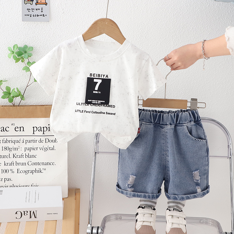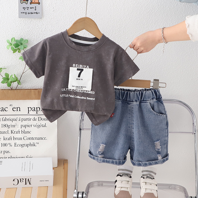 소년 여름 정장 2025 새로운 스타일 어린이 유행 및 잘 생긴 한국 스타일 반팔 1 ~ 3 세 여름 아기 소년