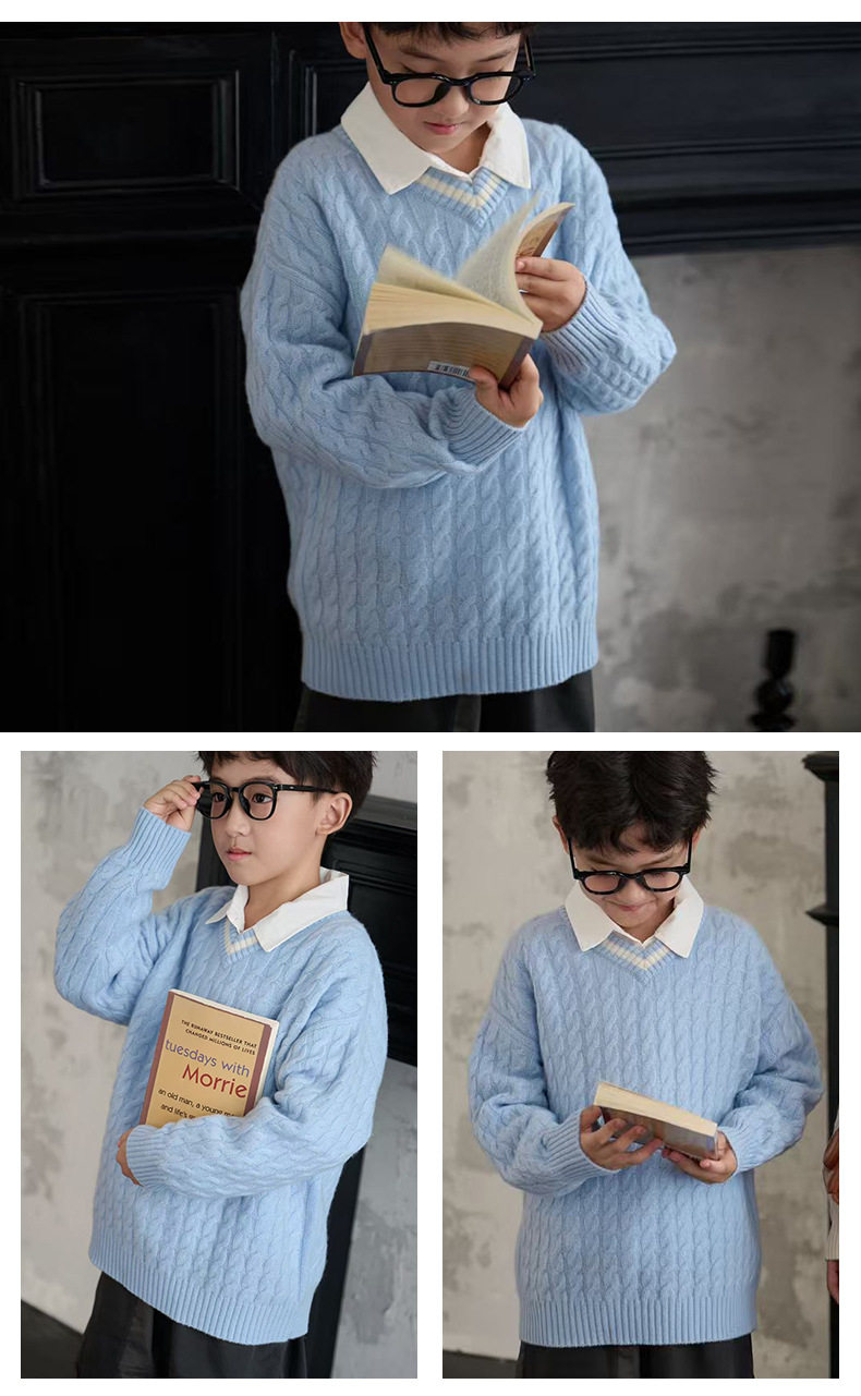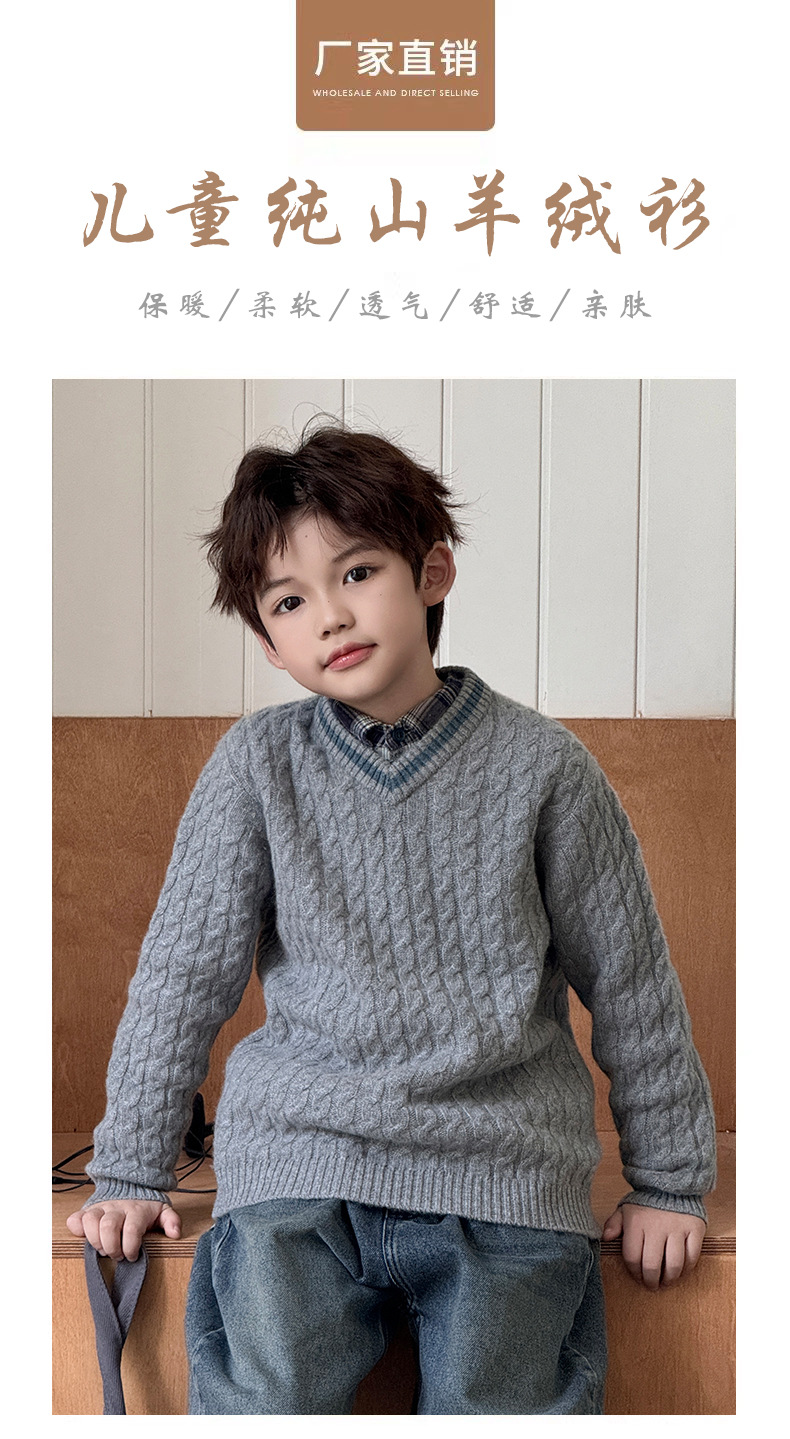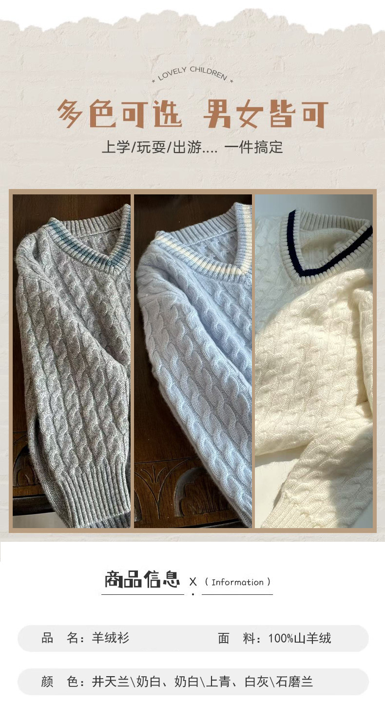 남아 및 여아용 캐시미어 브이넥 트위스트 레이어드 100 캐시미어 스웨터 아동용 따뜻한 단색 바닥 부모-자식 의류 100스토어 가기