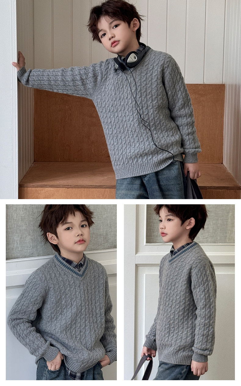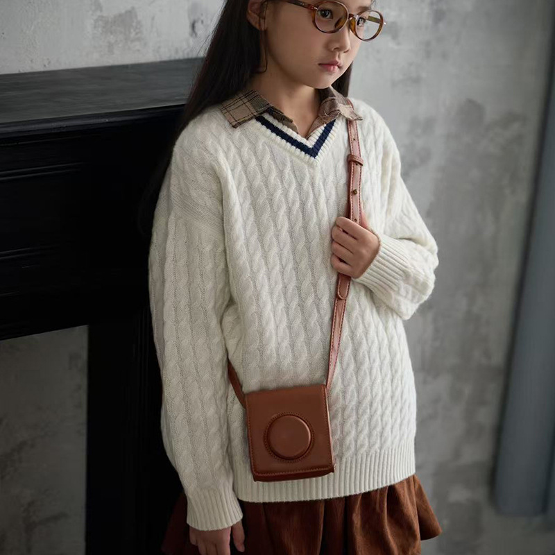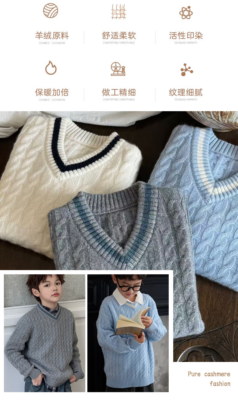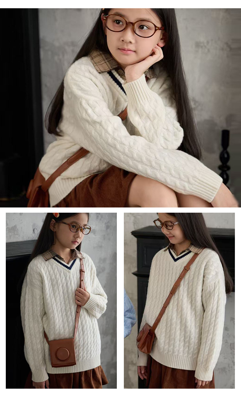 남아 및 여아용 캐시미어 브이넥 트위스트 레이어드 100 캐시미어 스웨터 아동용 따뜻한 단색 바닥 부모-자식 의류 100스토어 가기