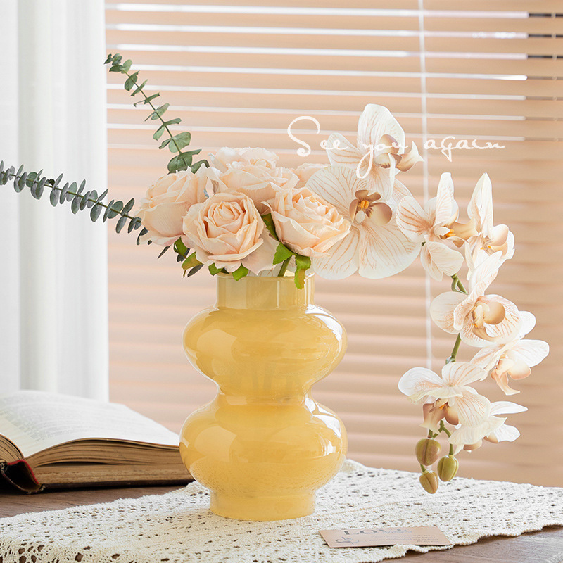 디자인 꽃 유리 꽃병 크림 색상 하이 엔드 불규칙한 예술 거실 꽃꽂이 틈새 식탁 장식품