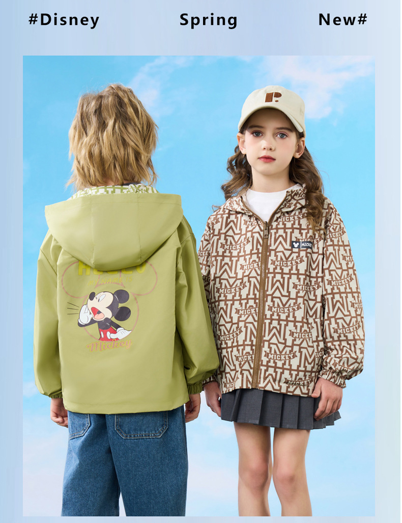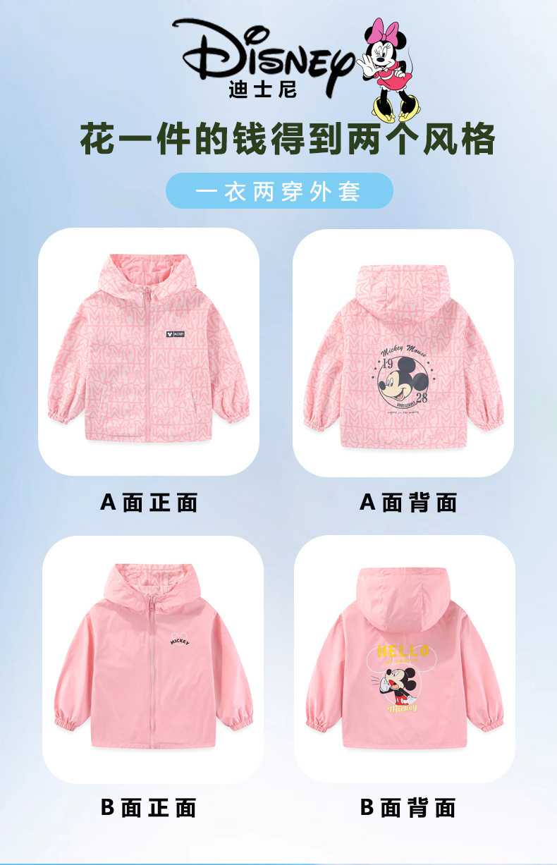 디즈니 아동용 양면 재킷 2024 봄, 가을 3방지 후드 한국 아동용 루즈 재킷스토어 가기