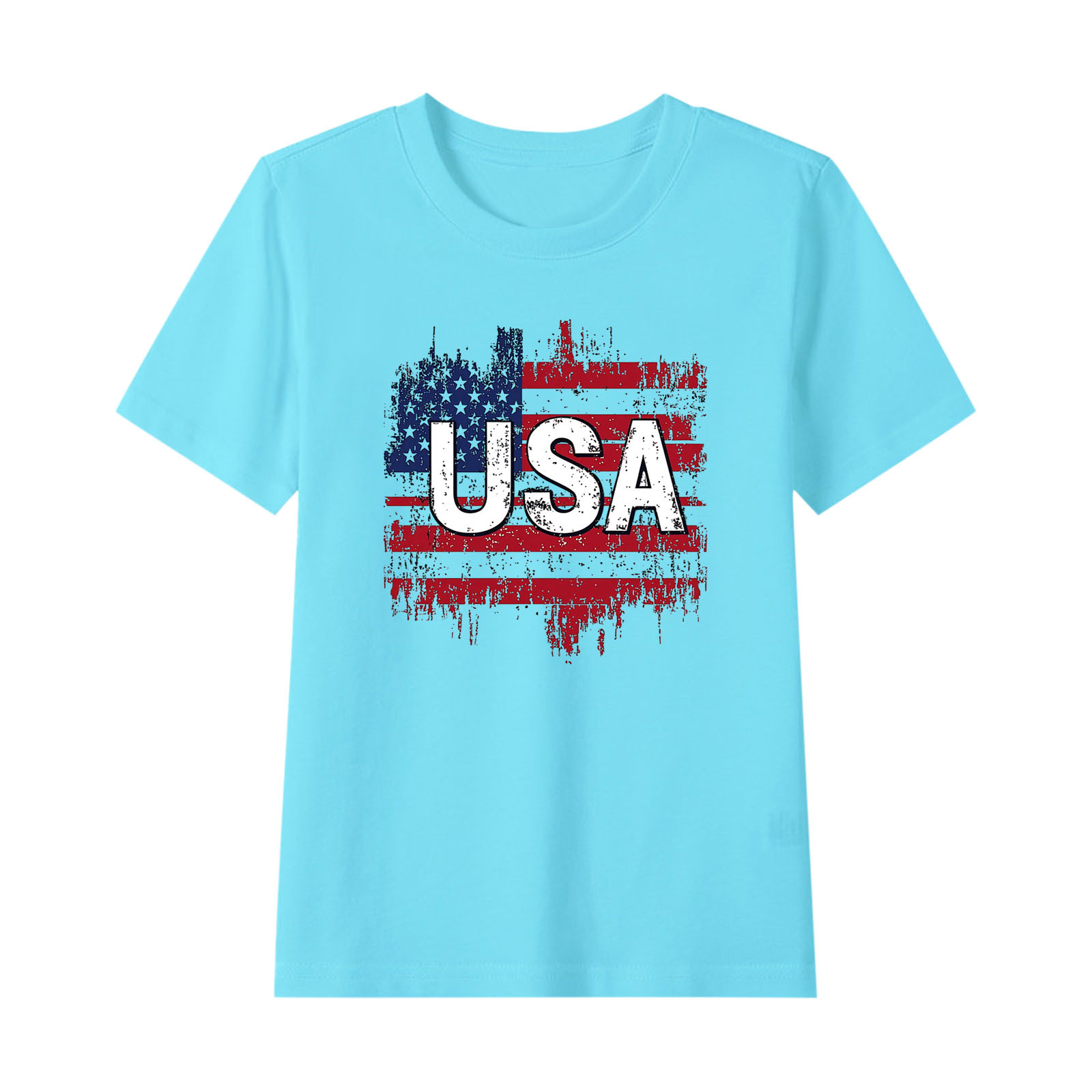 여름 신작 아동복 반팔 티셔츠 순면 라운드 넥 아동 유럽 및 미국 캐주얼 스포츠 크로스 보더 플래그 바닥 탑스토어 가기