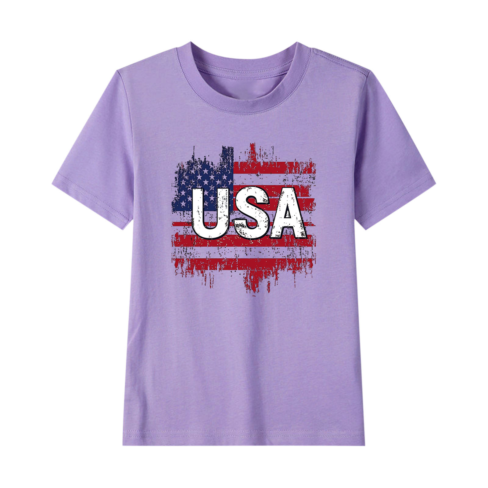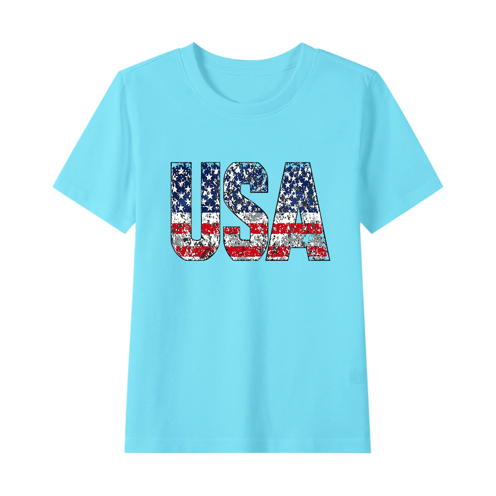 여름 신작 아동복 반팔 티셔츠 순면 라운드 넥 아동 유럽 및 미국 캐주얼 스포츠 크로스 보더 플래그 바닥 탑