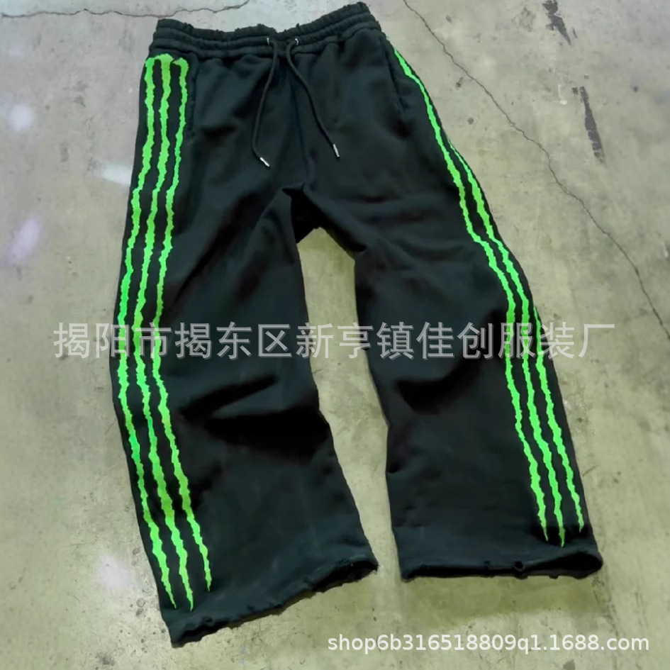 캐주얼 낙하산 바지 남성과 여성의 느슨한 넓은 다리 스트레이트 바지 캐주얼 국경 간 야간 글로우 미국 줄무늬스토어 가기