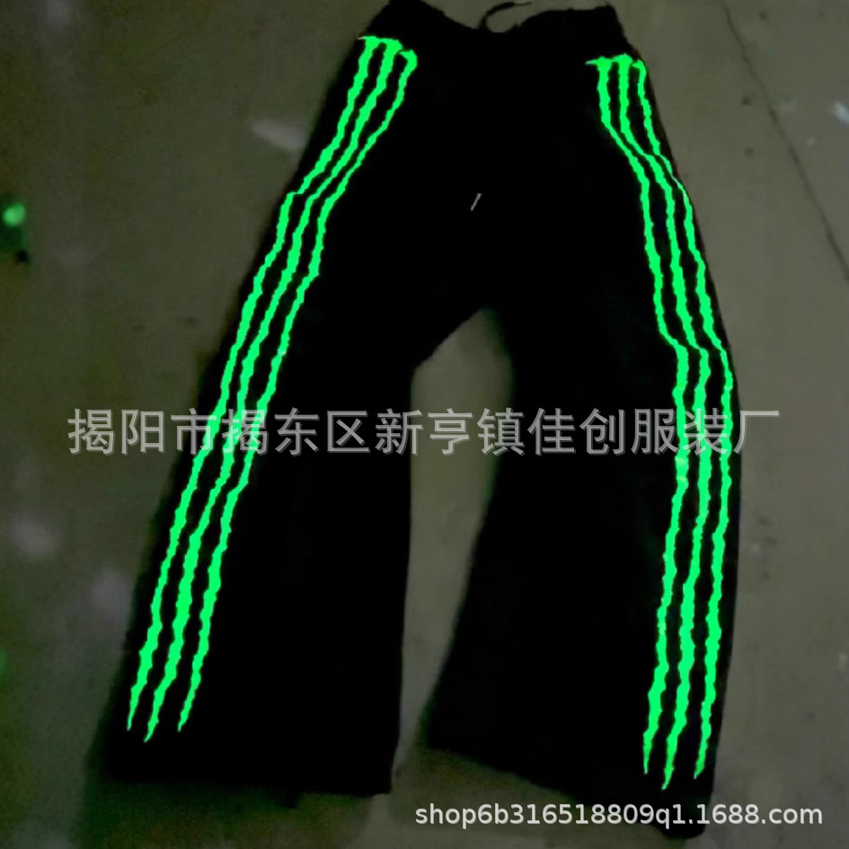 캐주얼 낙하산 바지 남성과 여성의 느슨한 넓은 다리 스트레이트 바지 캐주얼 국경 간 야간 글로우 미국 줄무늬