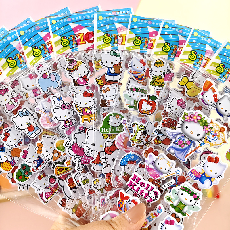 어린이 만화 스티커 얼음 공주 KT 고양이 조합 3 차원 버블 스티커 방수 쉬운 PVC 스티커스토어 가기