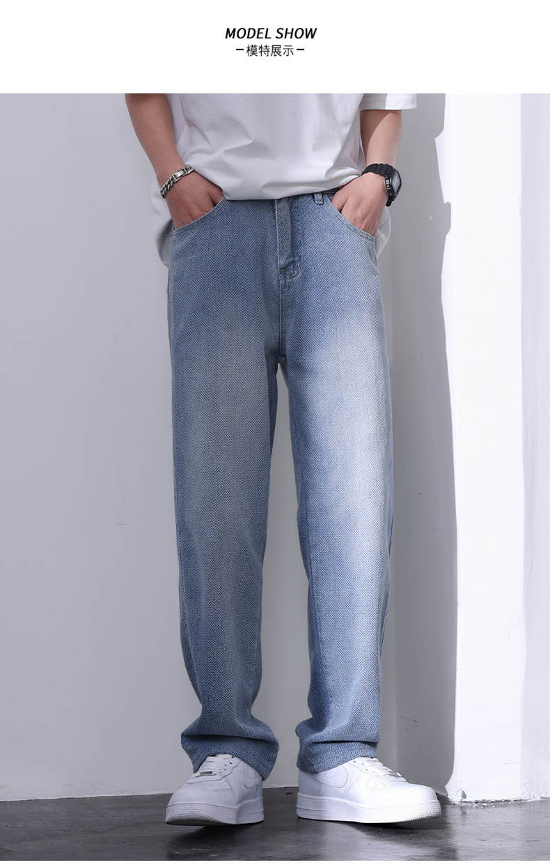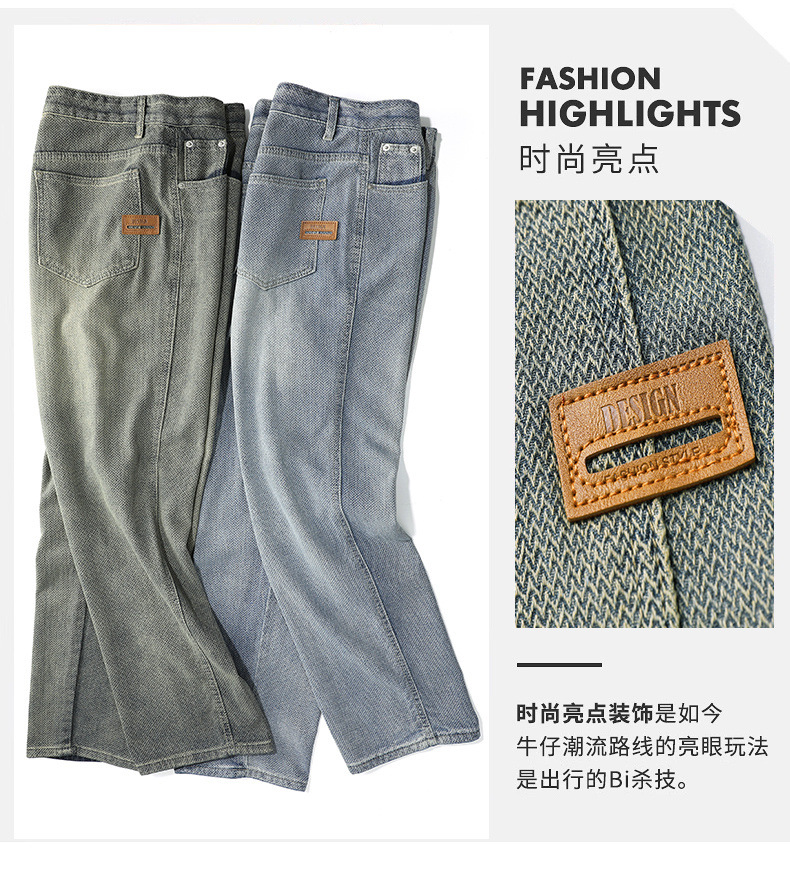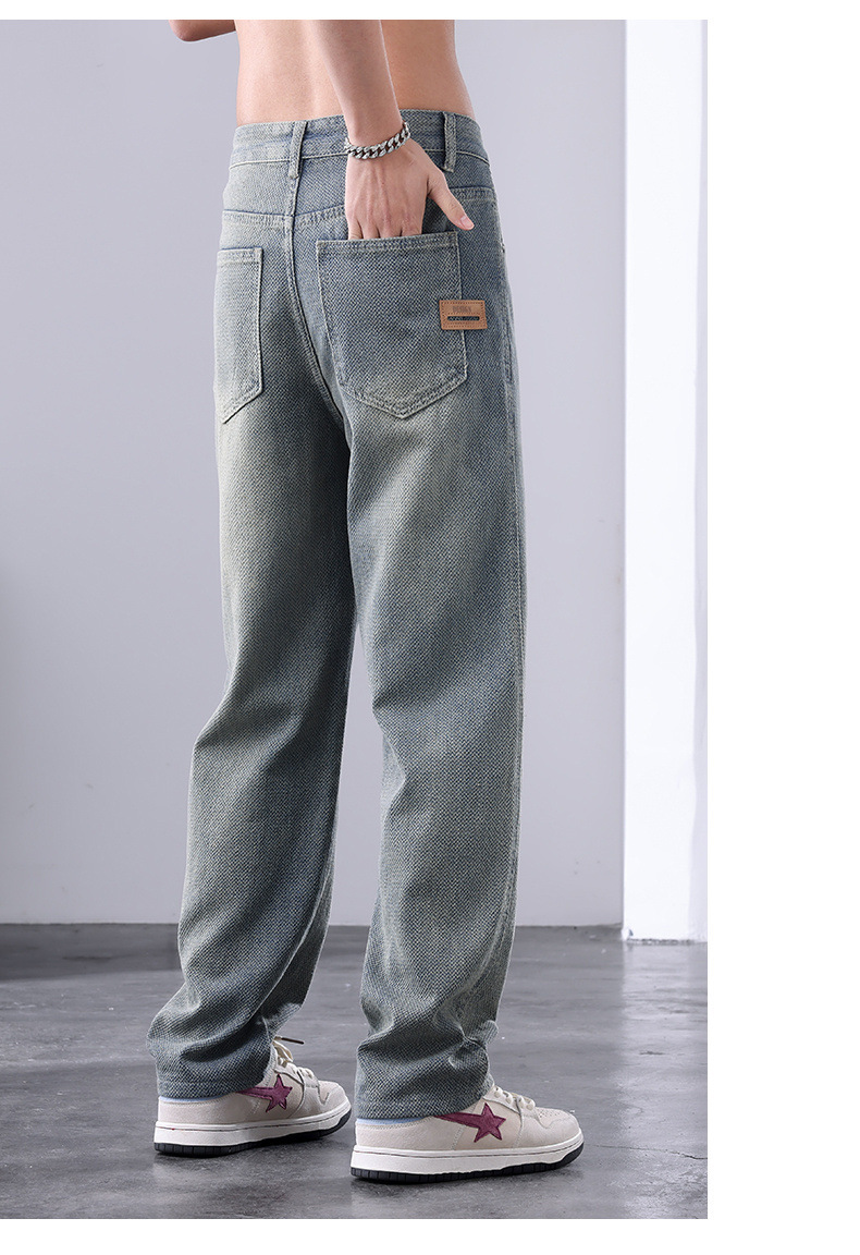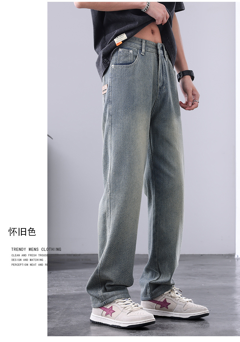 트렌디 브랜드 루즈한 별이 빛나는 하늘 패턴 남성용 스트레이트 청바지 2025 봄, 가을 신작 남성 여름 미국식 와이드 팬츠