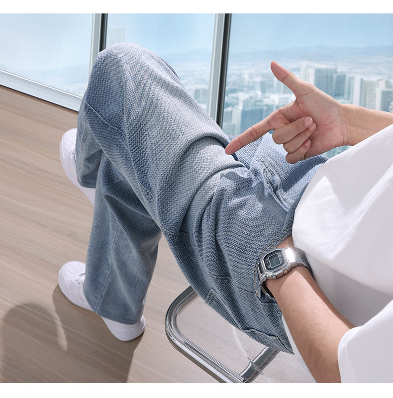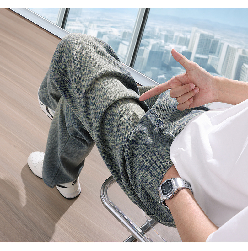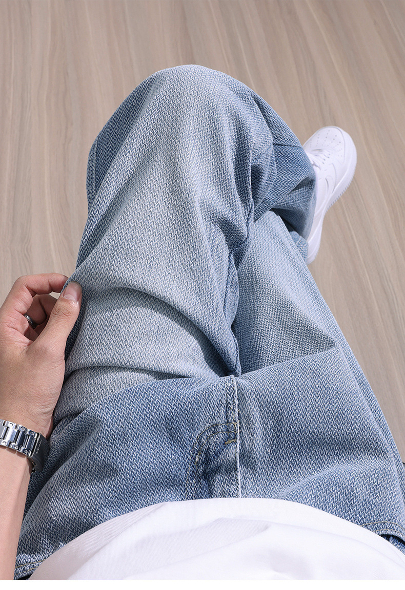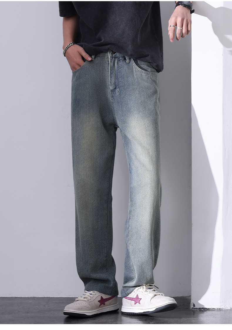 트렌디 브랜드 루즈한 별이 빛나는 하늘 패턴 남성용 스트레이트 청바지 2025 봄, 가을 신작 남성 여름 미국식 와이드 팬츠