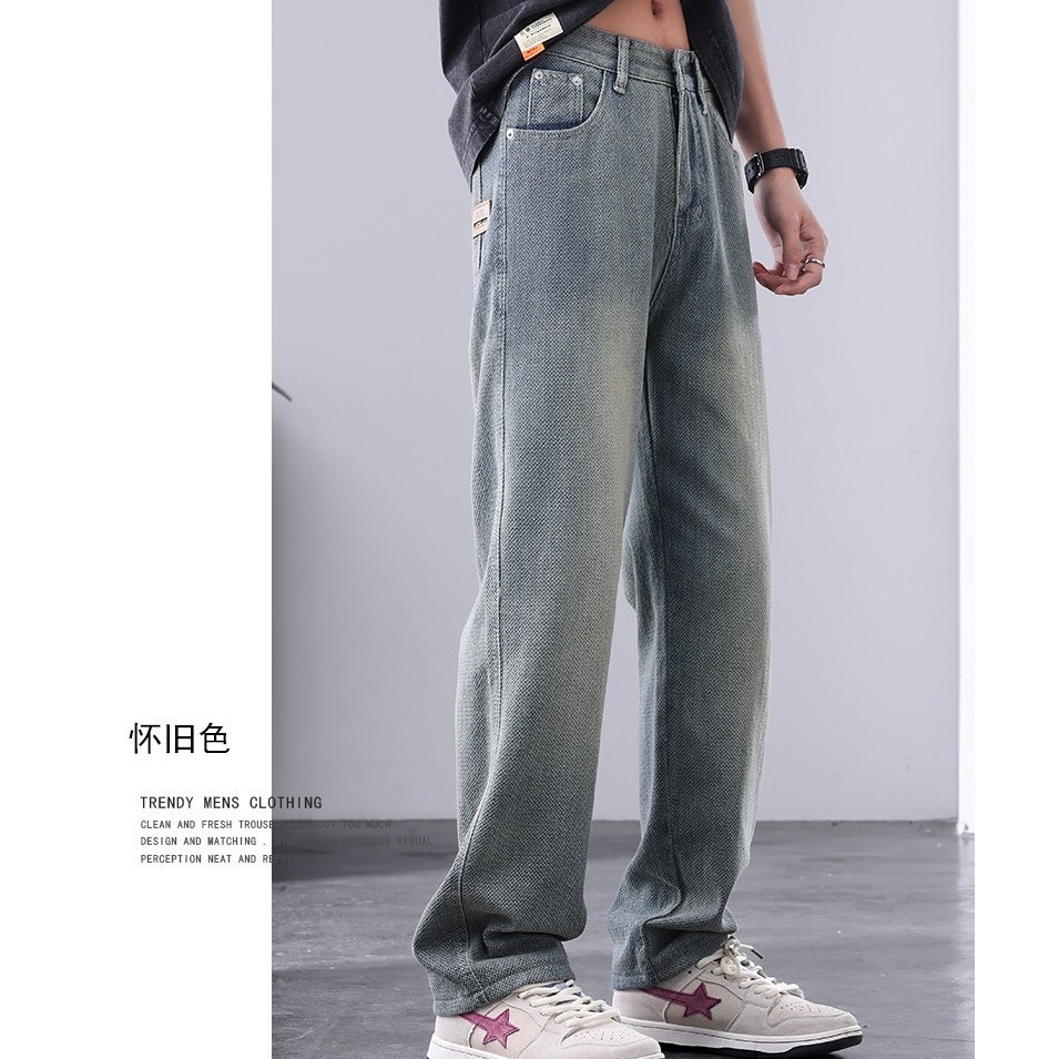 트렌디 브랜드 루즈한 별이 빛나는 하늘 패턴 남성용 스트레이트 청바지 2025 봄, 가을 신작 남성 여름 미국식 와이드 팬츠스토어 가기