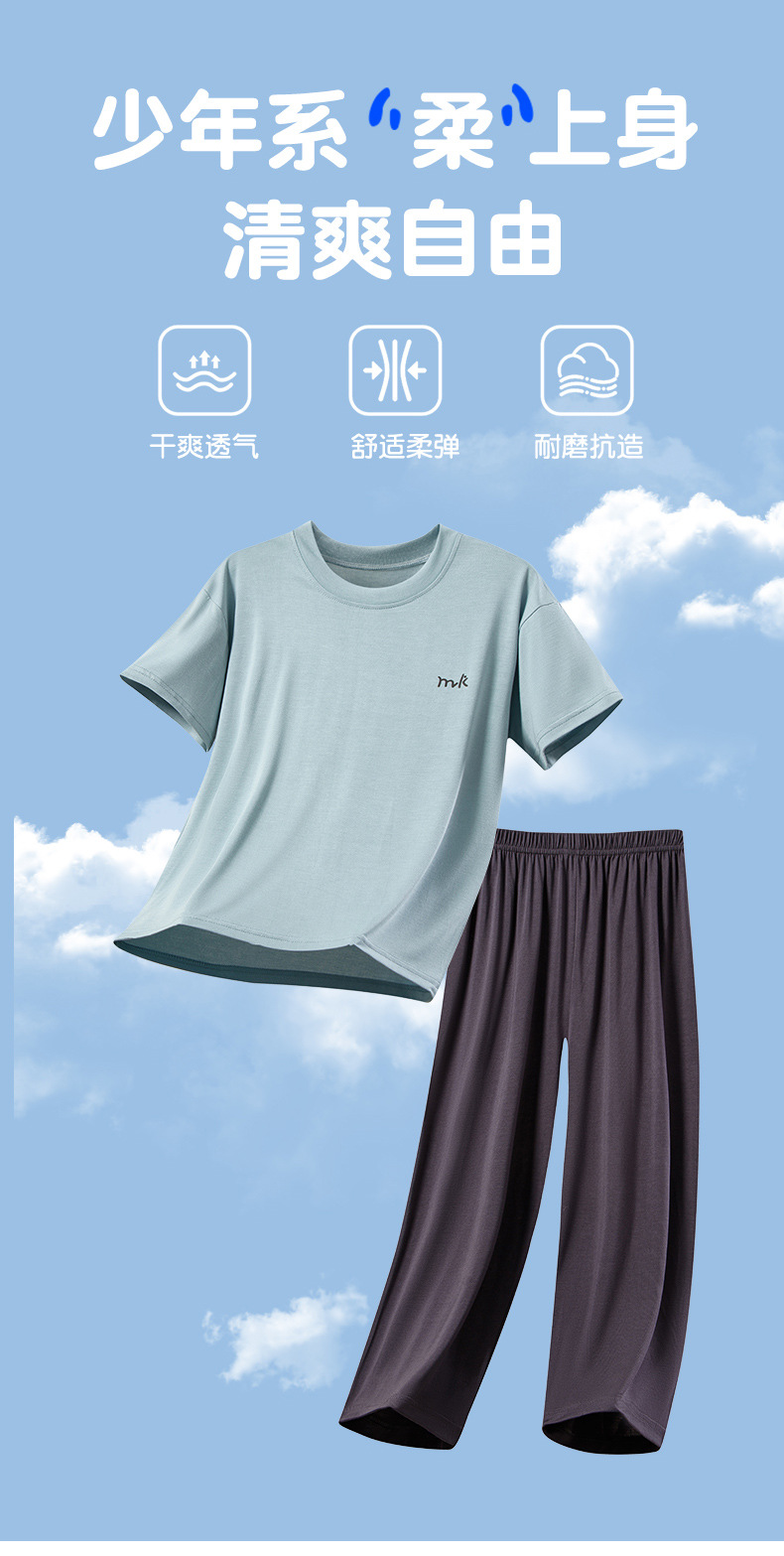 소년 잠옷 어린이 여름 얇은 집 옷 소녀 아이스 실크 반팔 바지 대형 어린이 및 청소년 에어컨 옷스토어 가기