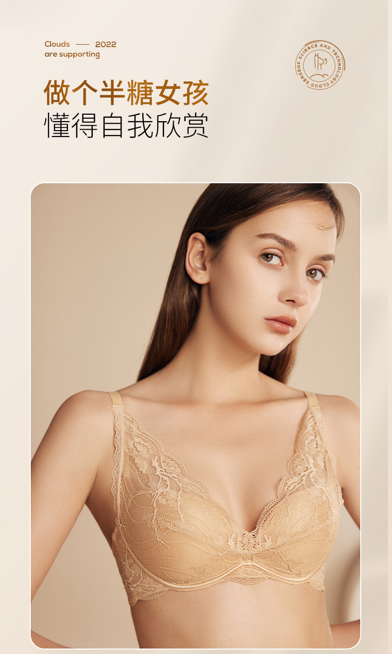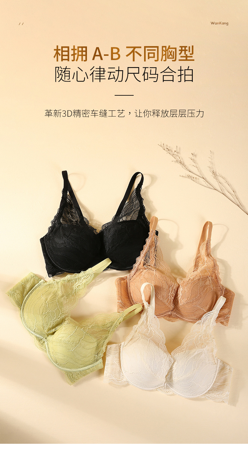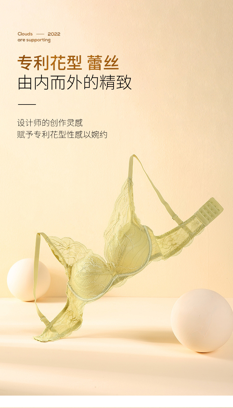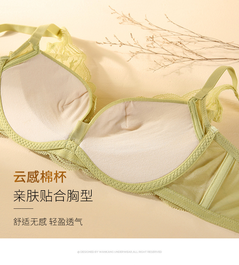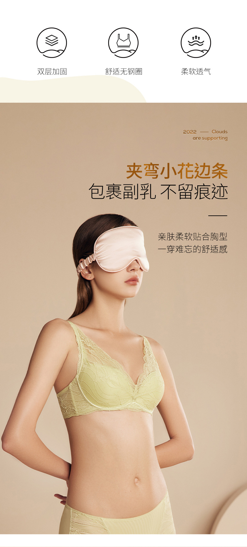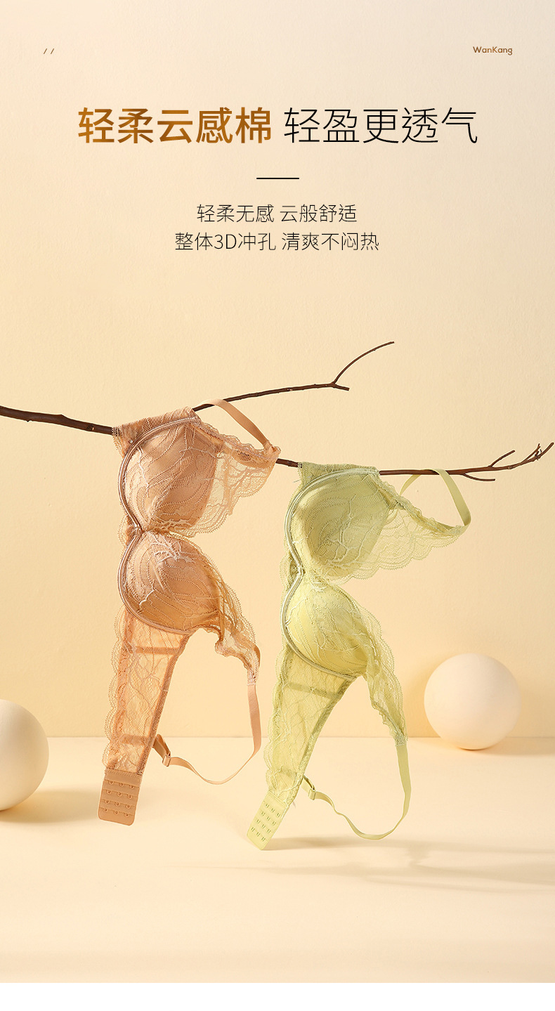 여성 속옷, 편안하고 구름같은 느낌, 부드럽고 통기성이 좋은 푸쉬업 AB 중간 얇은 컵 노와이어 브라