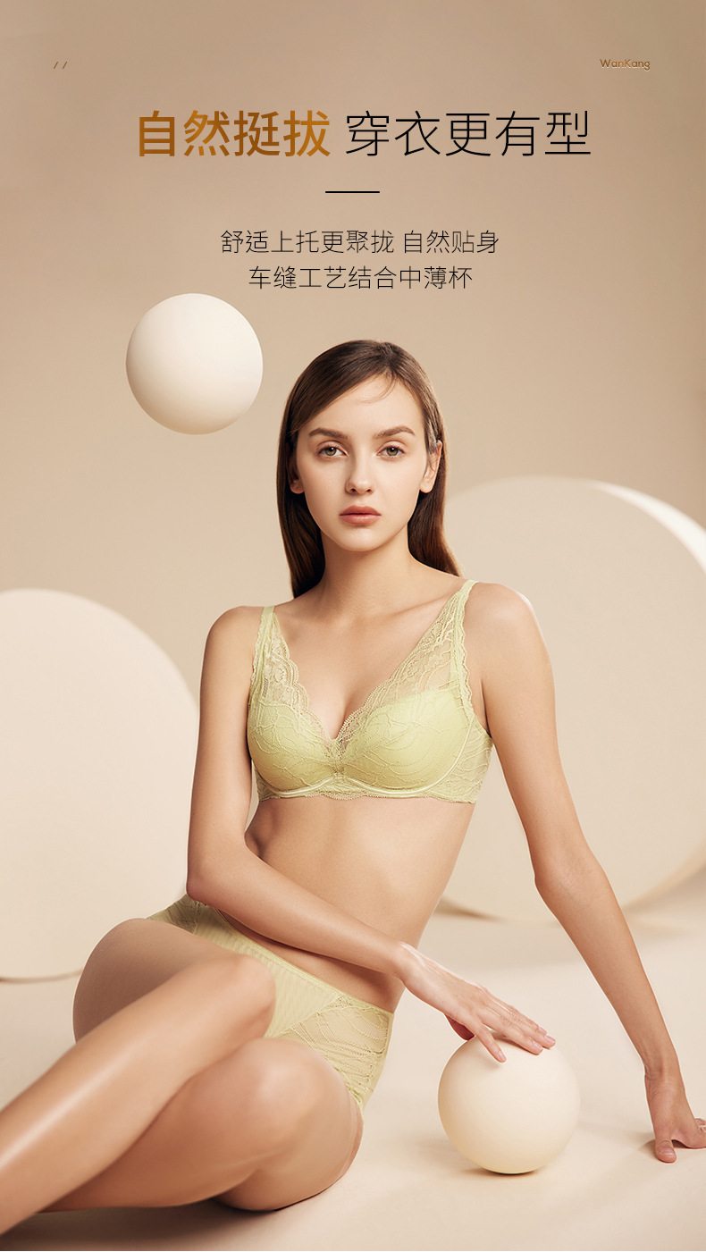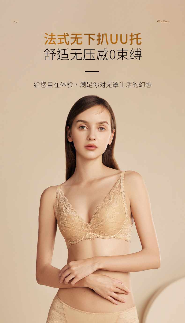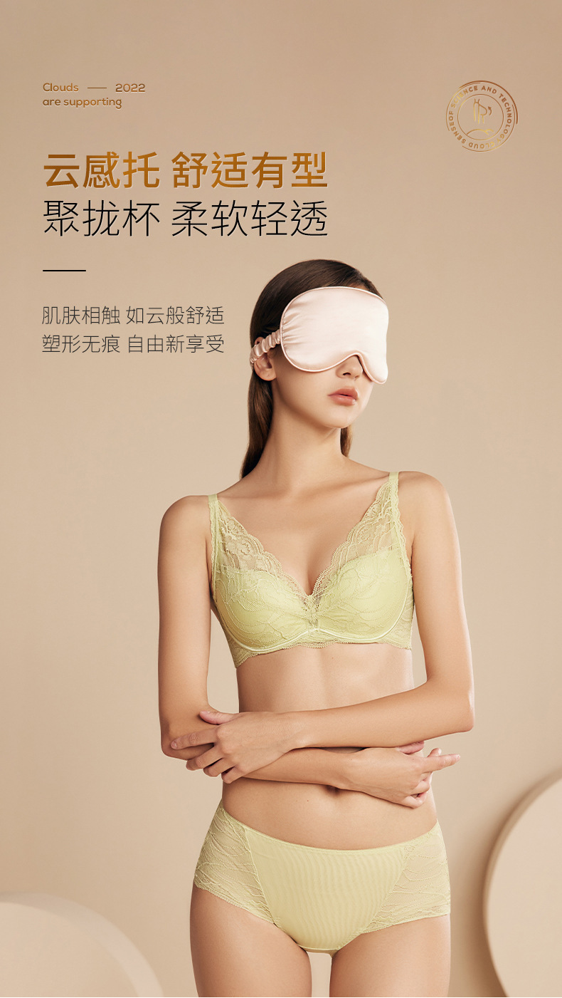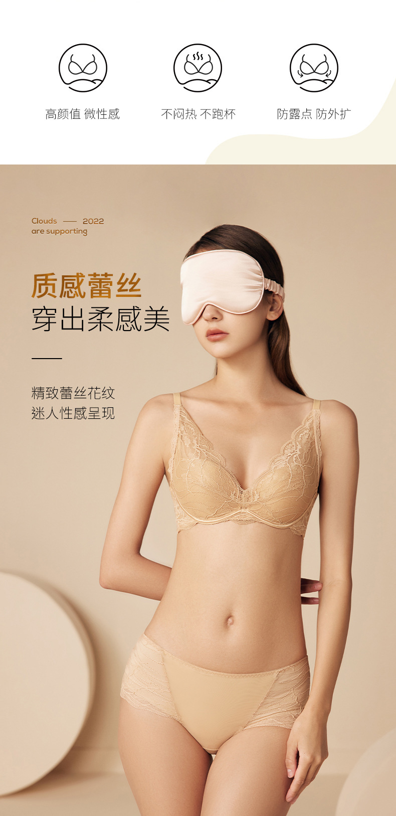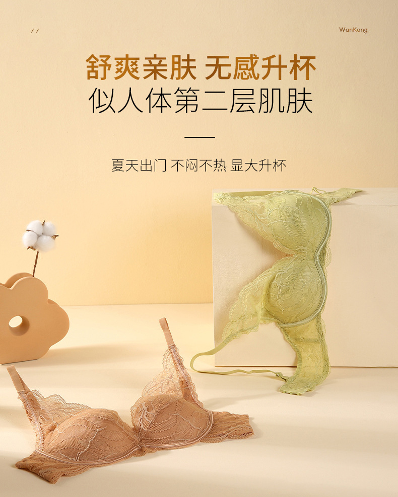 여성 속옷, 편안하고 구름같은 느낌, 부드럽고 통기성이 좋은 푸쉬업 AB 중간 얇은 컵 노와이어 브라