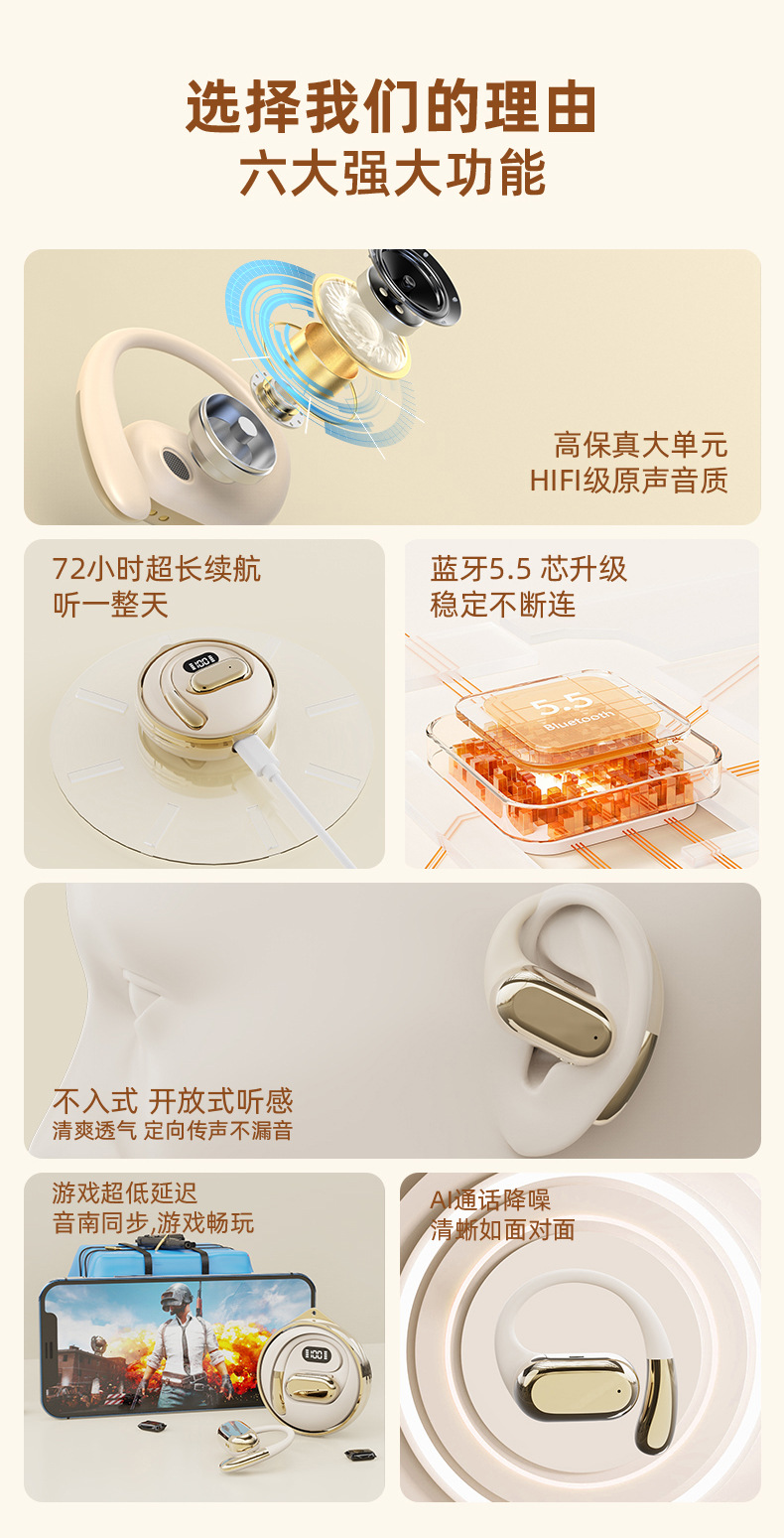 • [스킨 컬러 + 고급 버전] HiFi 고화질 음질 + 드라마 및 게임 시 낮은 대기 시간 + 소리 누출 없는 UFT 방향성 사운드 전송 + 매우 긴 배터리 수명 + 편안한 착용감