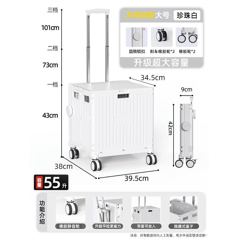 • 두꺼운 [55L] 4륜 - 흰색 - 브레이크가 있는 저소음 고무 범용 휠