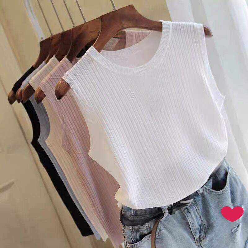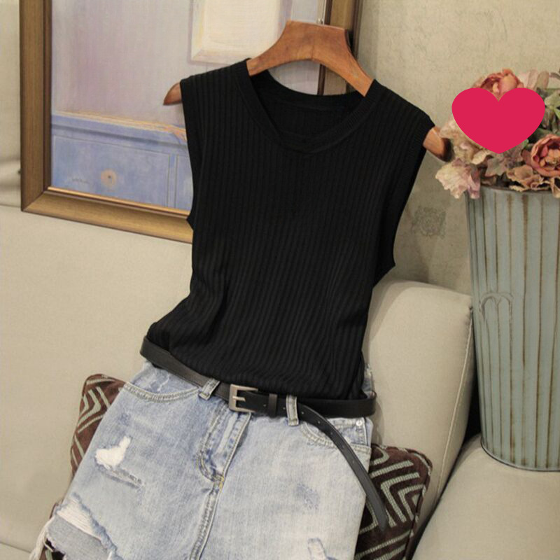 2025 여름 조끼 여성 아우터웨어 티셔츠 민소매 니트 탑 루즈 플러스 사이즈 베이스 셔츠 얇은 슬링