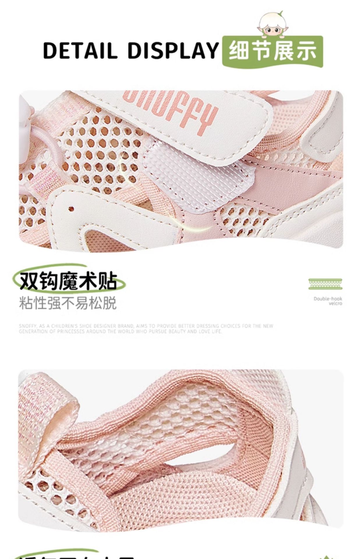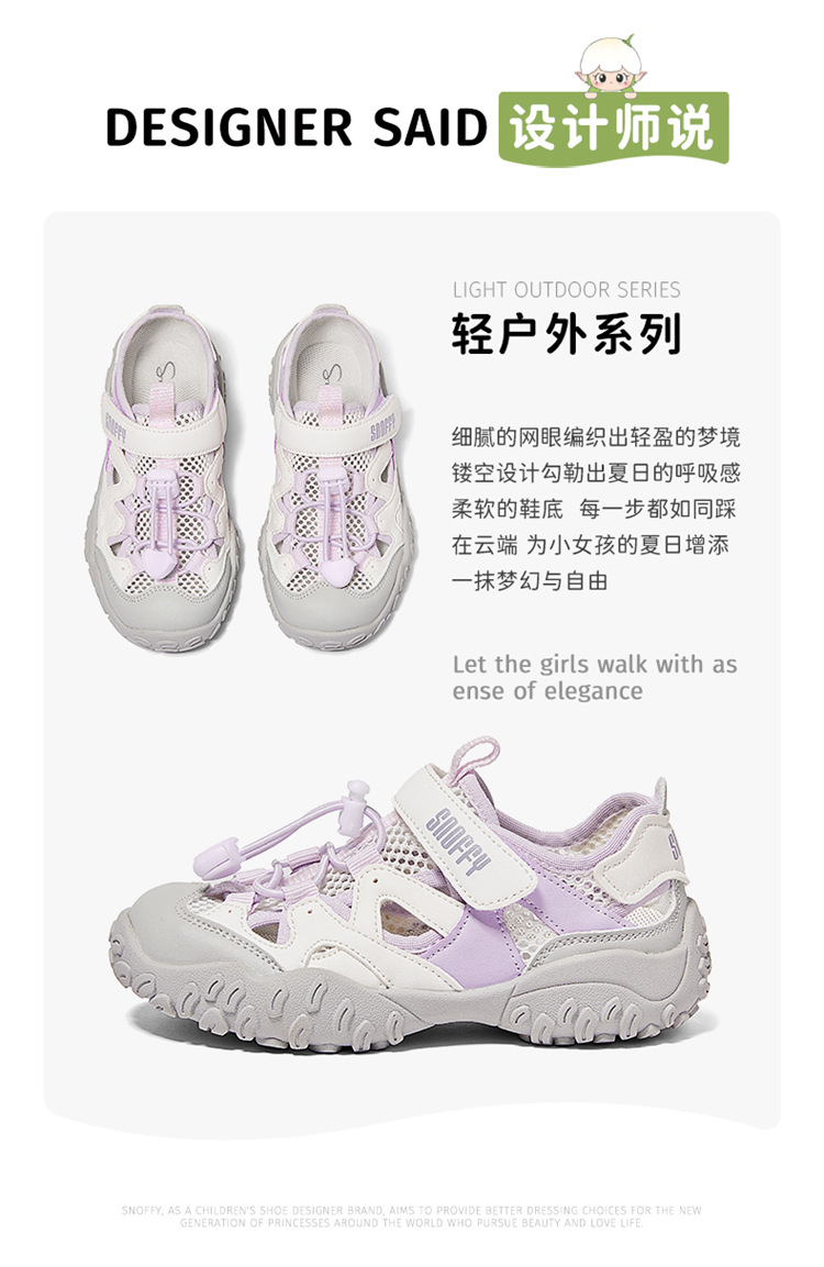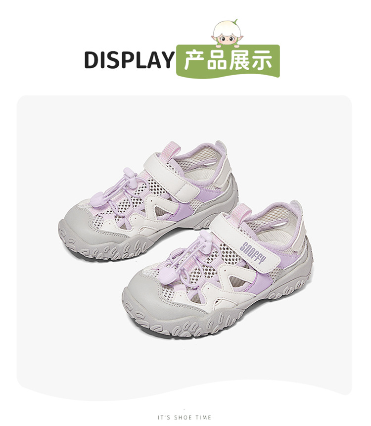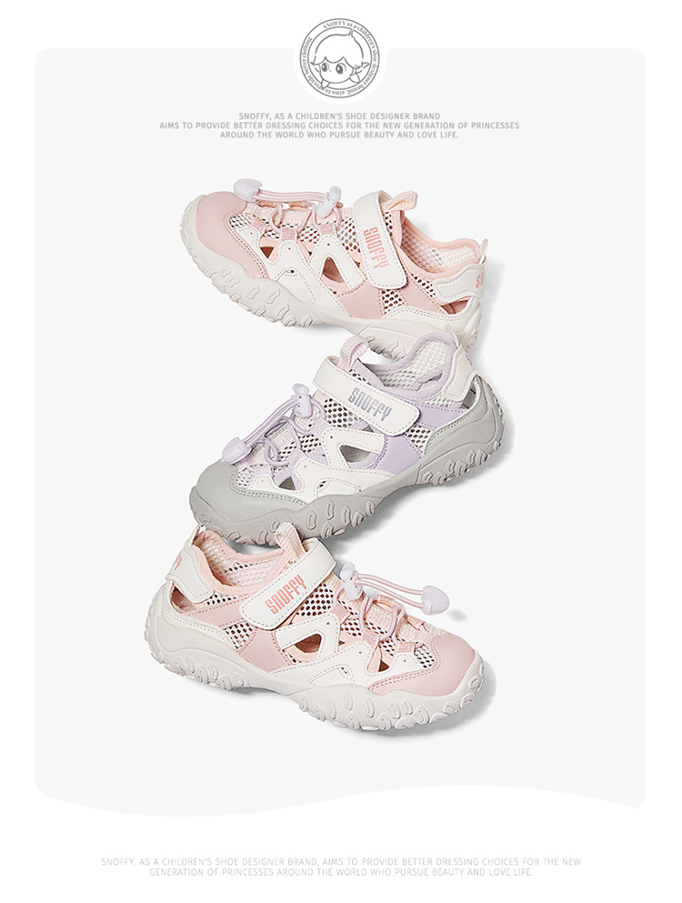 Snafi Girls Sandals 2025 여름 새로운 메쉬 통기성 야외 캐주얼 신발 미끄럼 방지 어린이 운동화