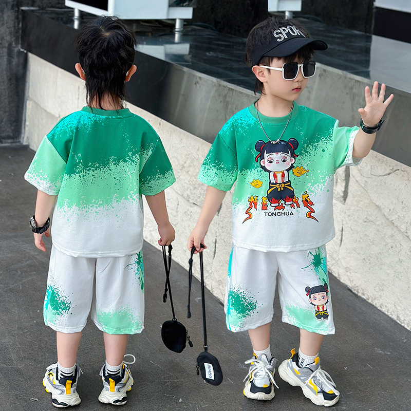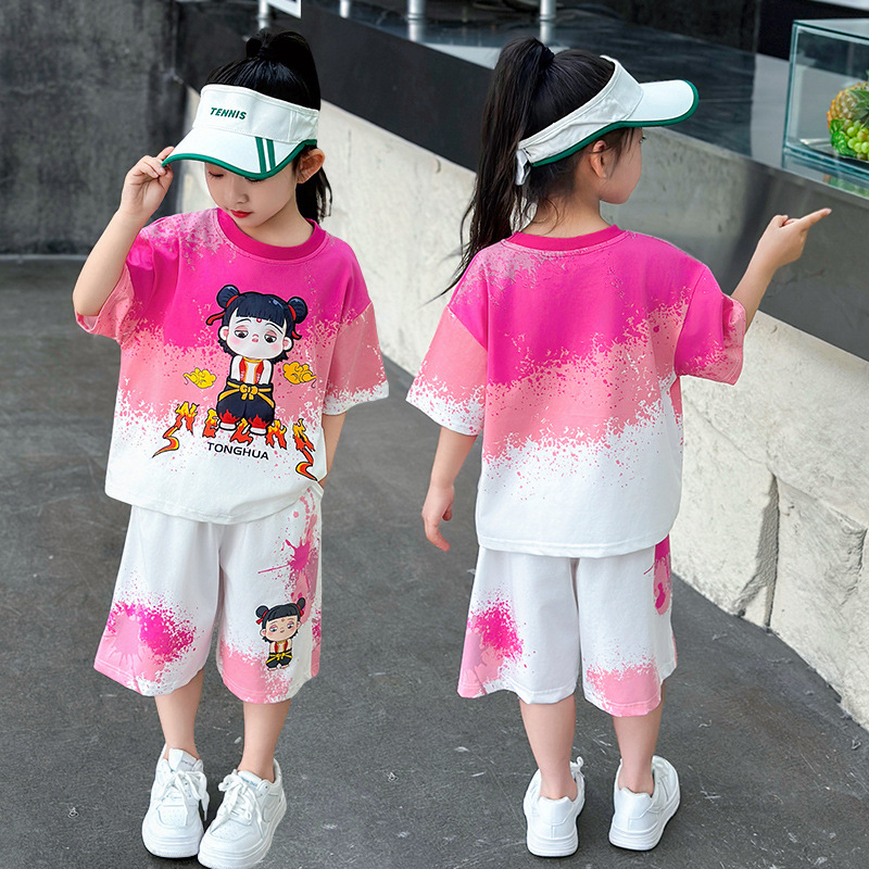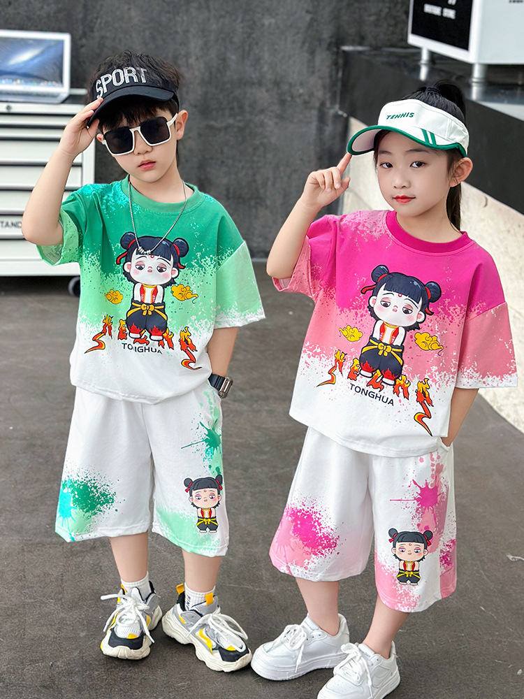어린이 옷 소년 여름 반팔 세트 소녀 2025 새로운 악마 어린이 61 국가 조수 공연 옷