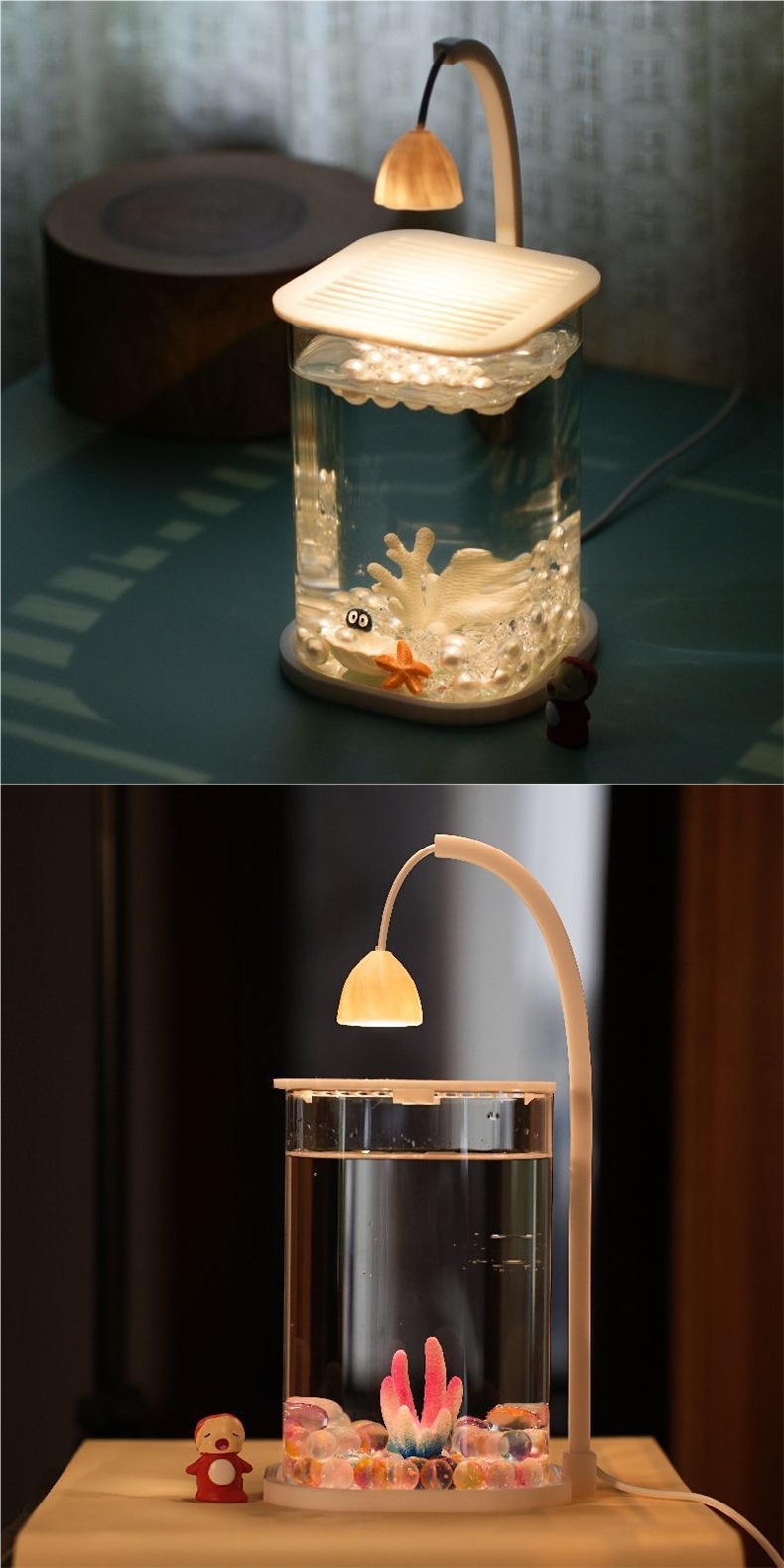 어항, 초백색, 작은 게으른 유리 탱크, 거실 창의적인 데스크탑 장식품, 감각적인 장식 조명